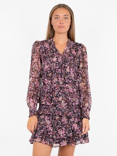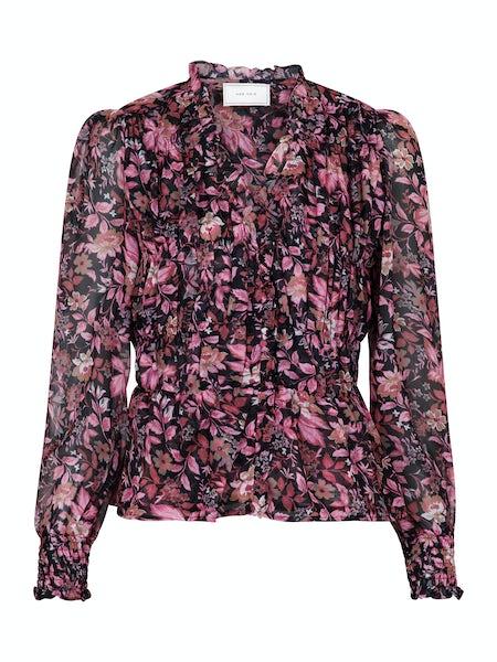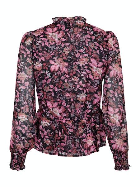 Naisten paitapusero. Kukkakuosinen Neo Noir frillapusero. Kauluksessa ja hihoissa frillasomisteet.