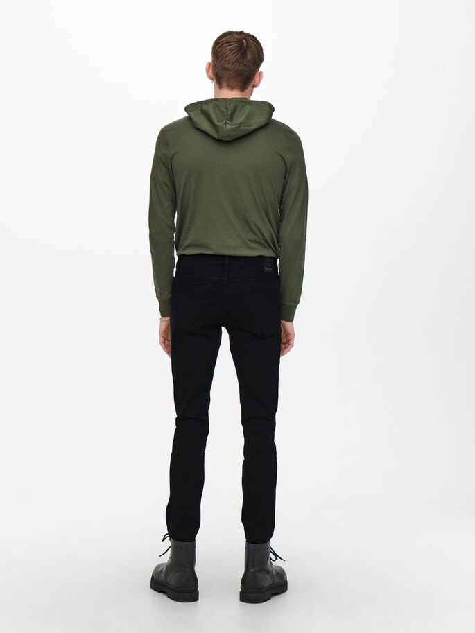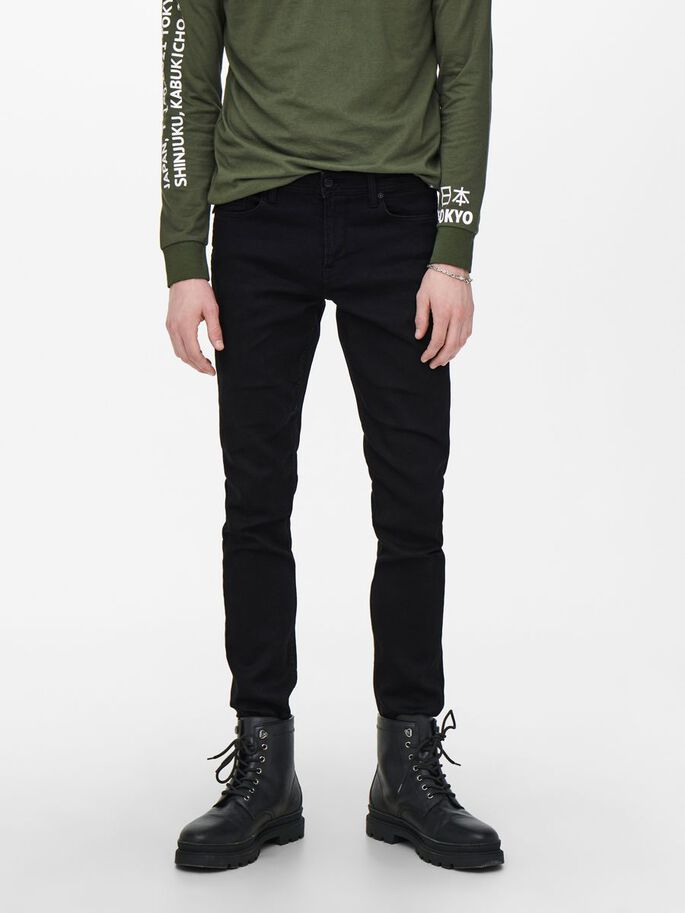 Kapeat, mustat Only & Sons farkut.