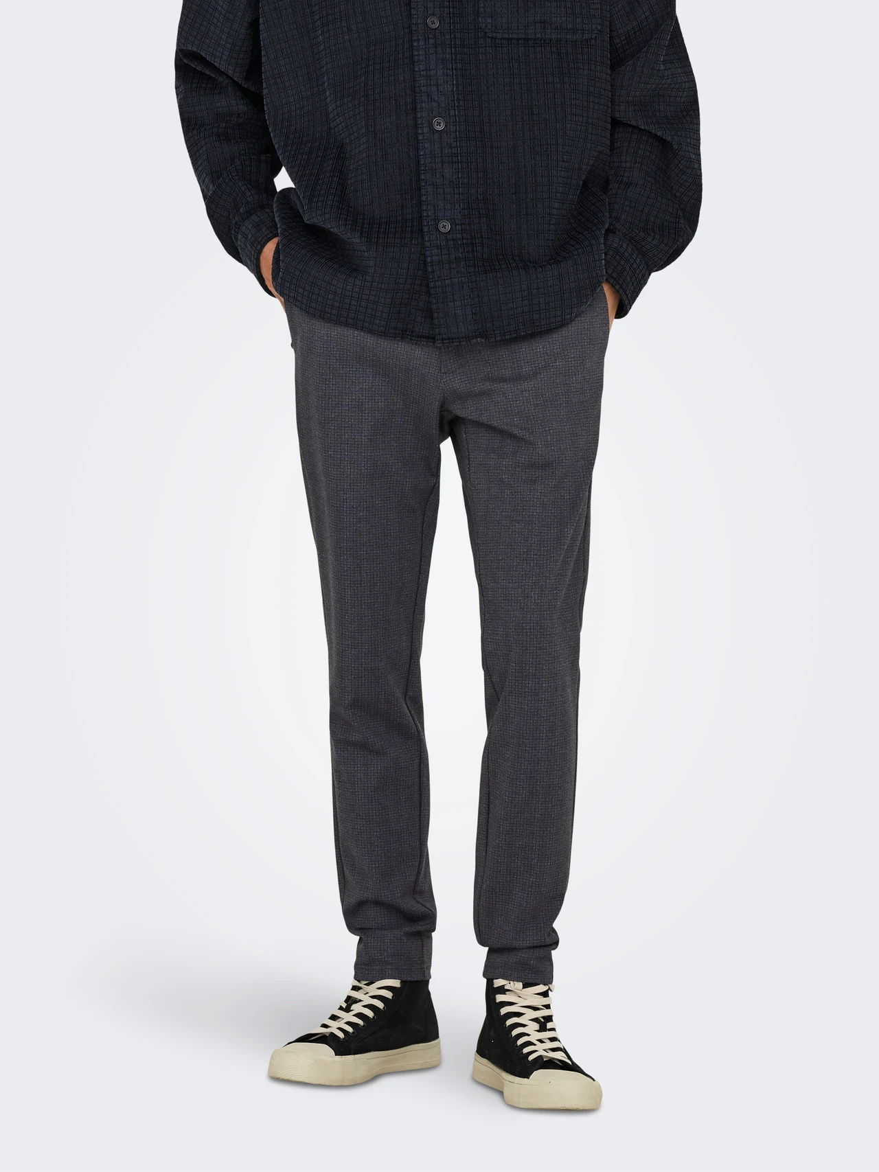 Siistit Only & Sons slim fit -housut. Housuissa on miellyttävän joustava materiaali, kapeat lahkeet, sivutaskut sekä napilliset takataskut. Housut sopivat loistavasti niin arkeen kuin työhön.