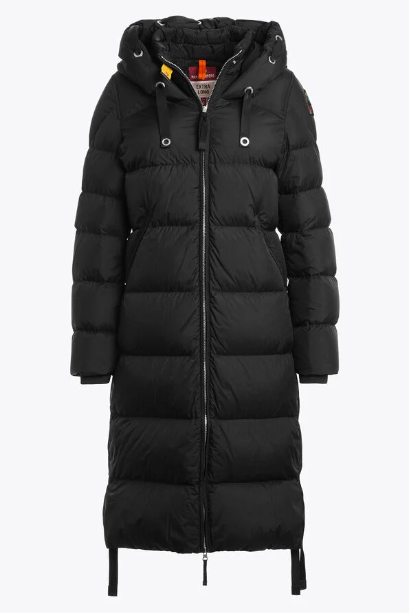 Naisten takki. Pitkä, lämmin untuvatäytteinen Parajumpers Panda -talvitakki. Takki soveltuu hyvin kylmiinkin talvipäiviin.