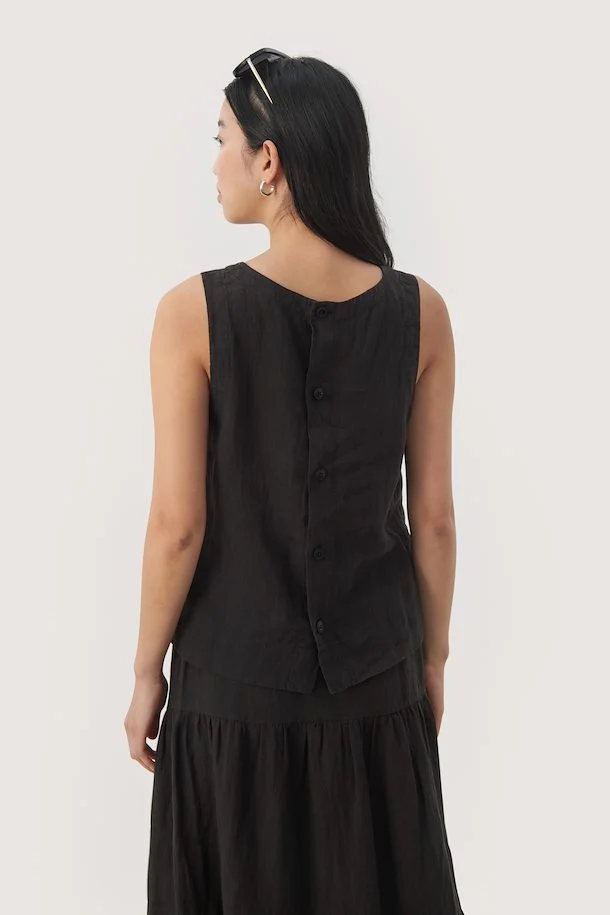 Monikäyttöinen Part Two toppi ylellista pellavaa. Takana pukevat napit.