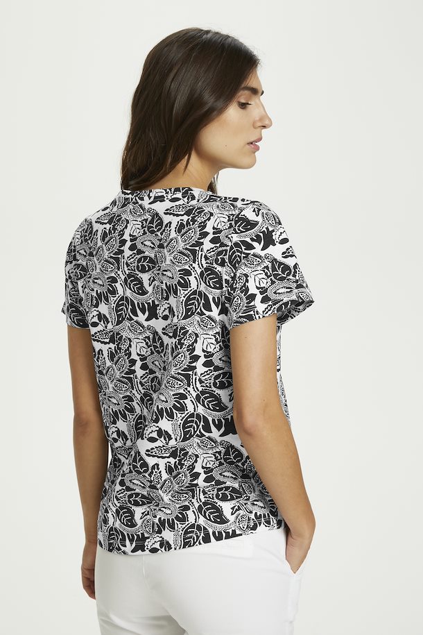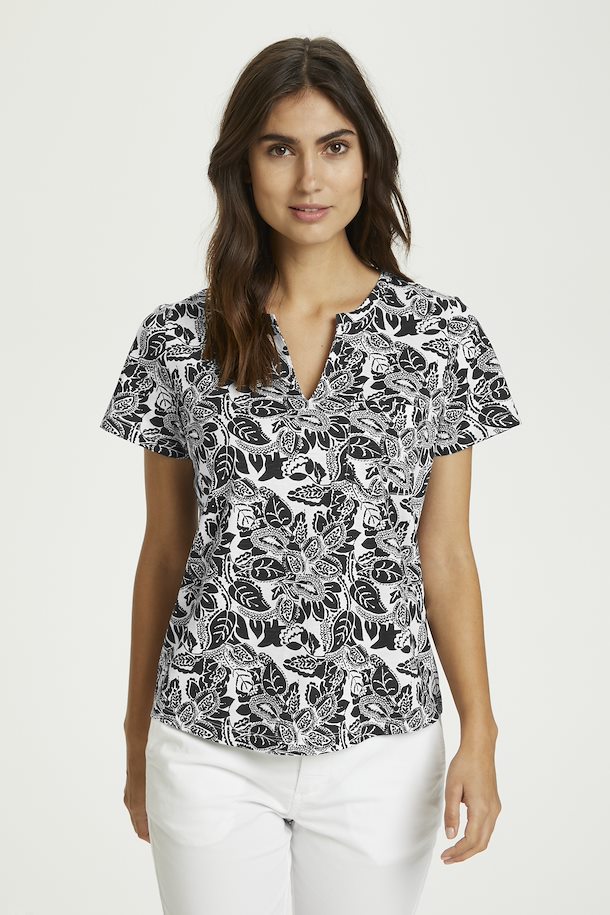 Naisten t-paita. Naisellinen Part Two kuosi t-paita on 100% puuvillaa. T-paidassa on v-pääntie, rintatasku sekä mustavalkoinen all over- kuosi.