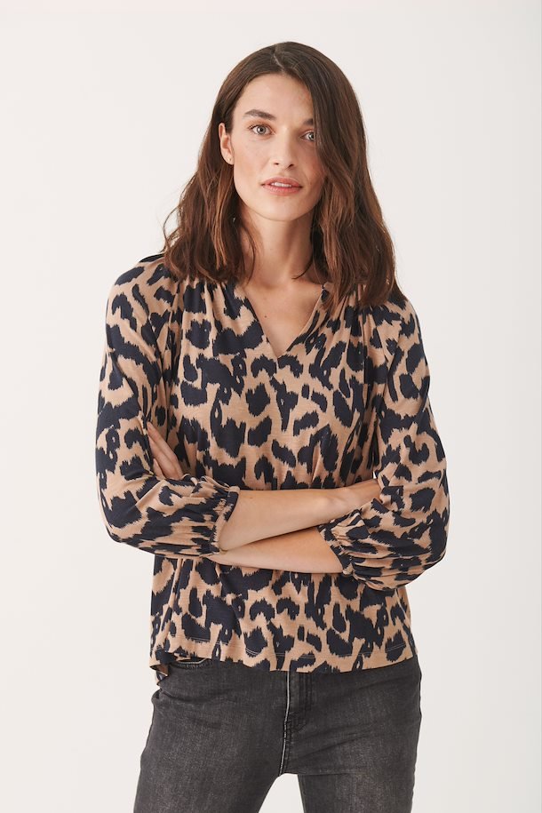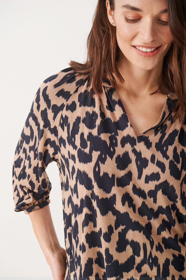 Naisten trikoopusero. Ekologisesti LENZING™ ECOVERO™ viskoosista valmistettu kaunis Part Two kuosipusero. Mukavaa trikoota. Vajaamittaiset hihat.