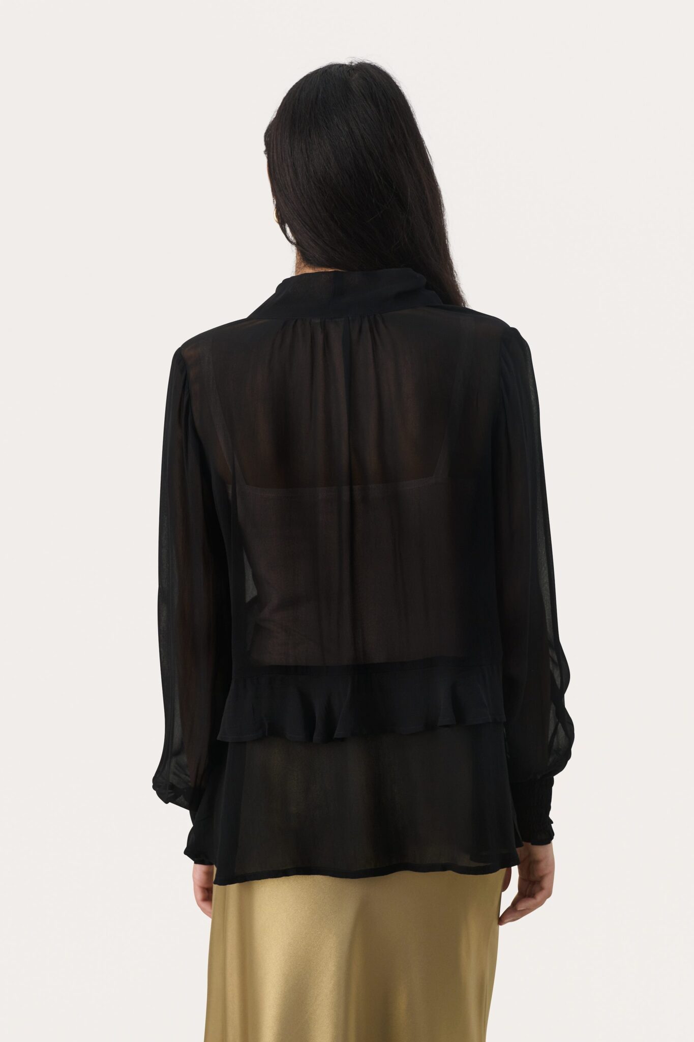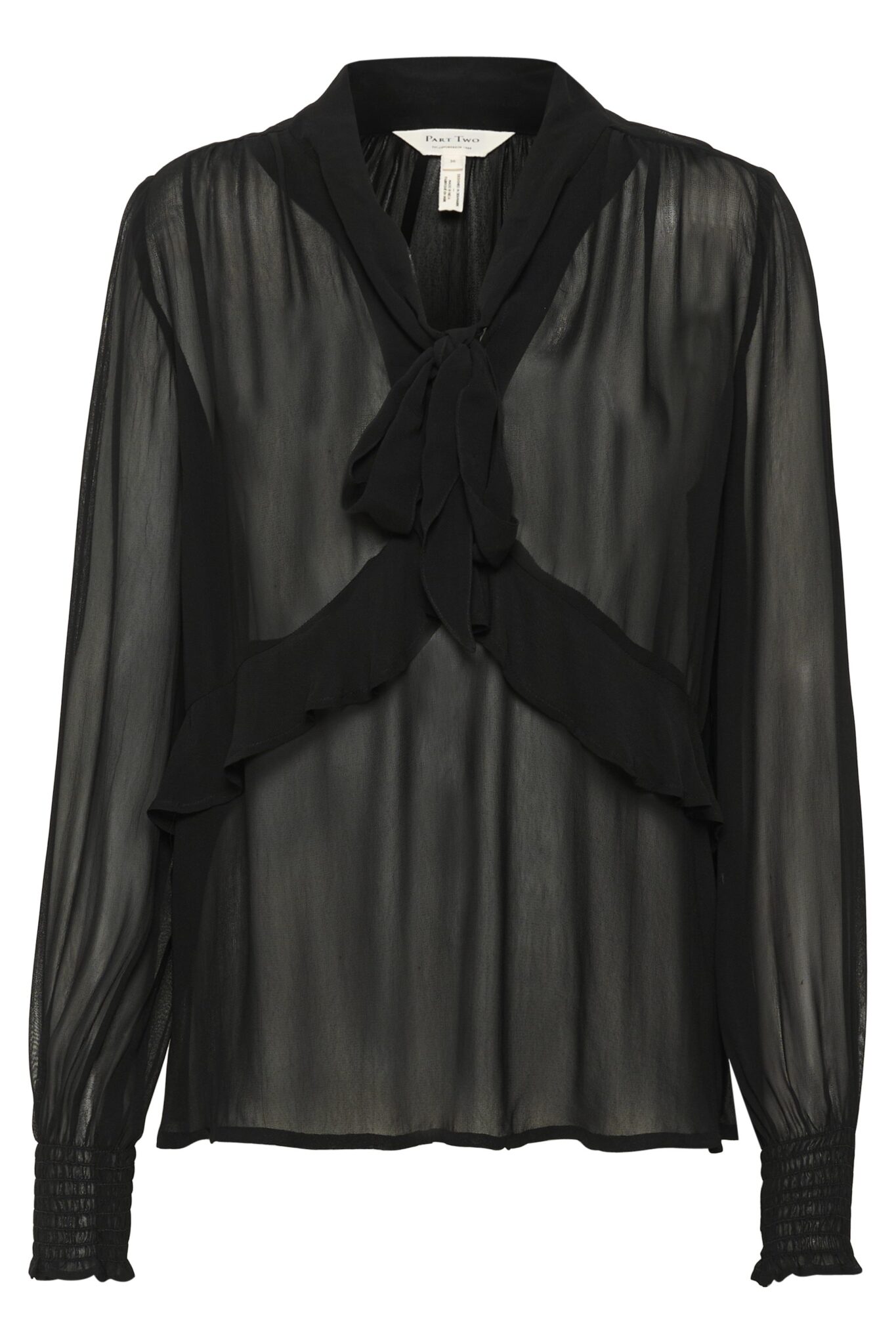 Tyylikäs Part Two viskoosipusero. Läpikuultavaa materiaalia. Pääntiellä rusetti.