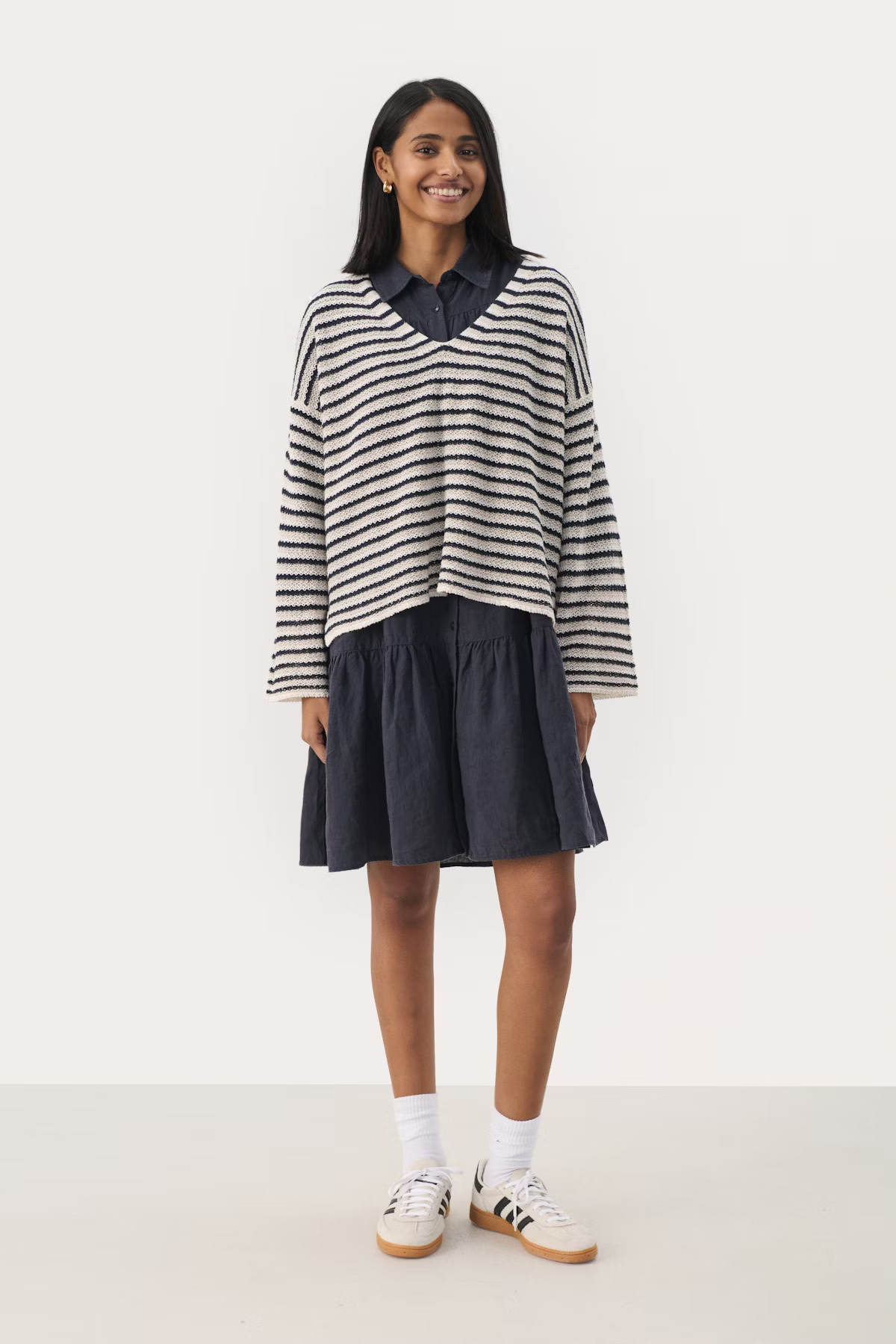 Valitse yläosat rintakehän mukaan. Vila, Vero Moda ja Selected Femme istuvat hieman tiukemmin, InWear ja Part Two reилummin. Epävarmoissa tilanteissa valitse isompi.