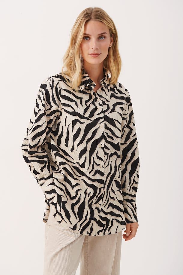 Naisten paitapusero. Tyylikäs seeprakuosinen Part Two puuvillapaita. Klassinen paitamalli.