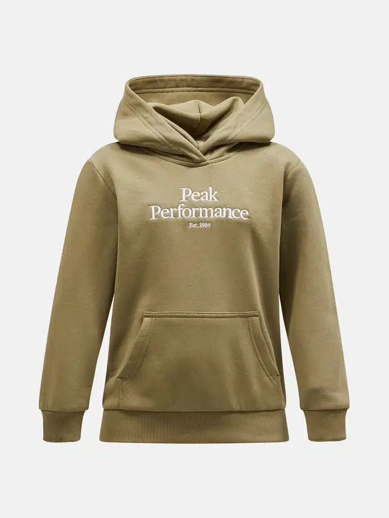 Peak Performance Junior- malliston hupparissa on säädettävä huppu, kengurutasku sekä Peak Performance Original logo rinnassa