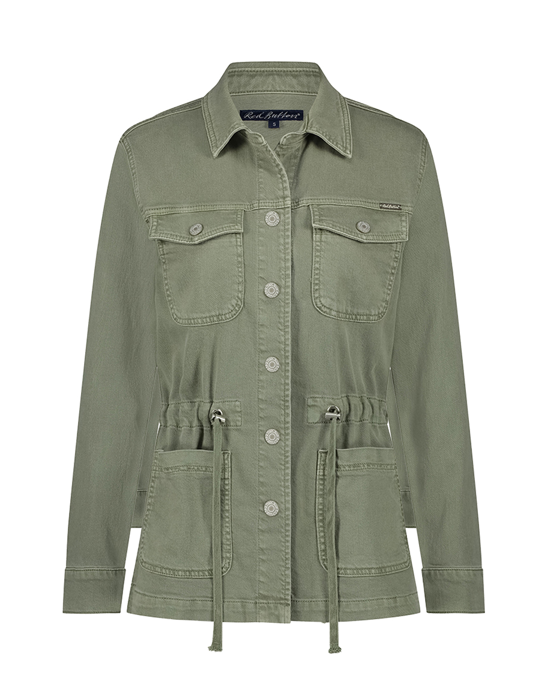 Kevyt Red Button cargotakki vastuullista puuvillaa.