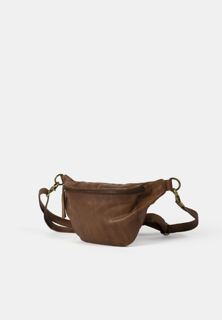 Unisex bumbag. Ajaton pähkinänruskea RE:DESIGNED bumbag on pehmeää nahkaa. Vetoketjukiinnitys ja säädettävä vyö. Laukun pinnassa lianhylkivyyskäsittely.