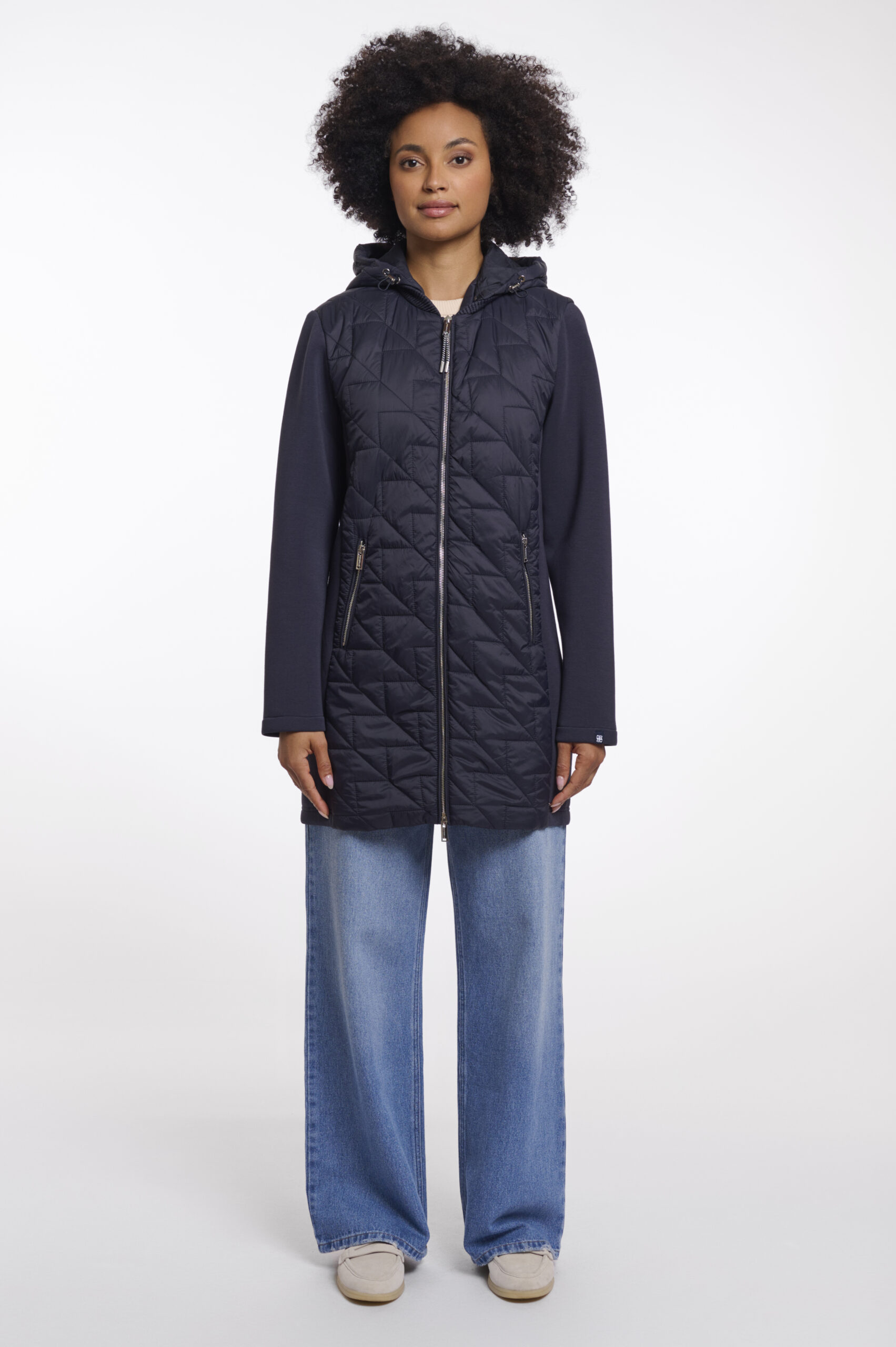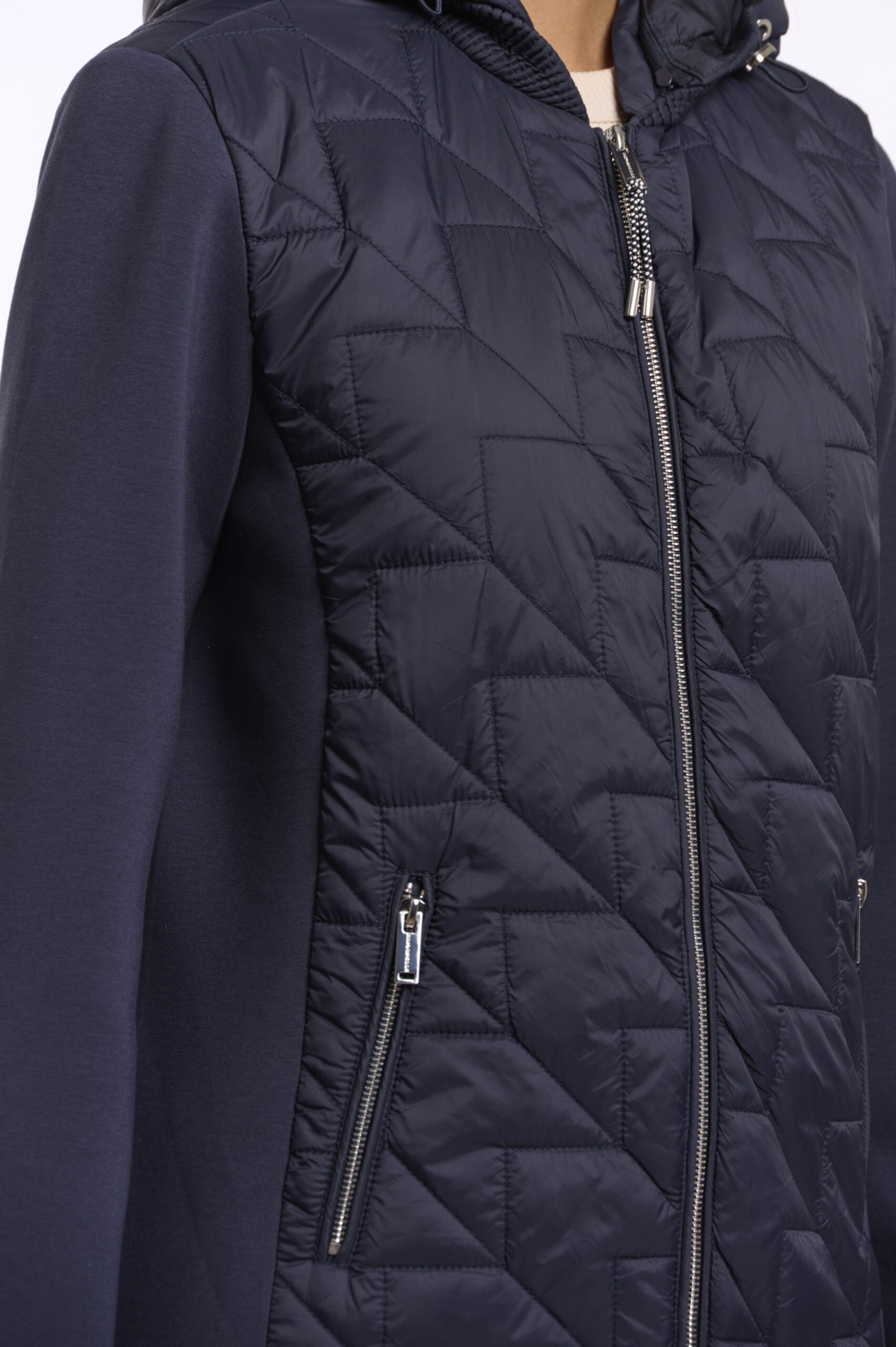 Materiaali: 100% Polyamidi. Täyte: 100% Kierrätetty polyesteri. Hihat: 56% Polyesteri, 19% Modaali, 17% Puuvilla.