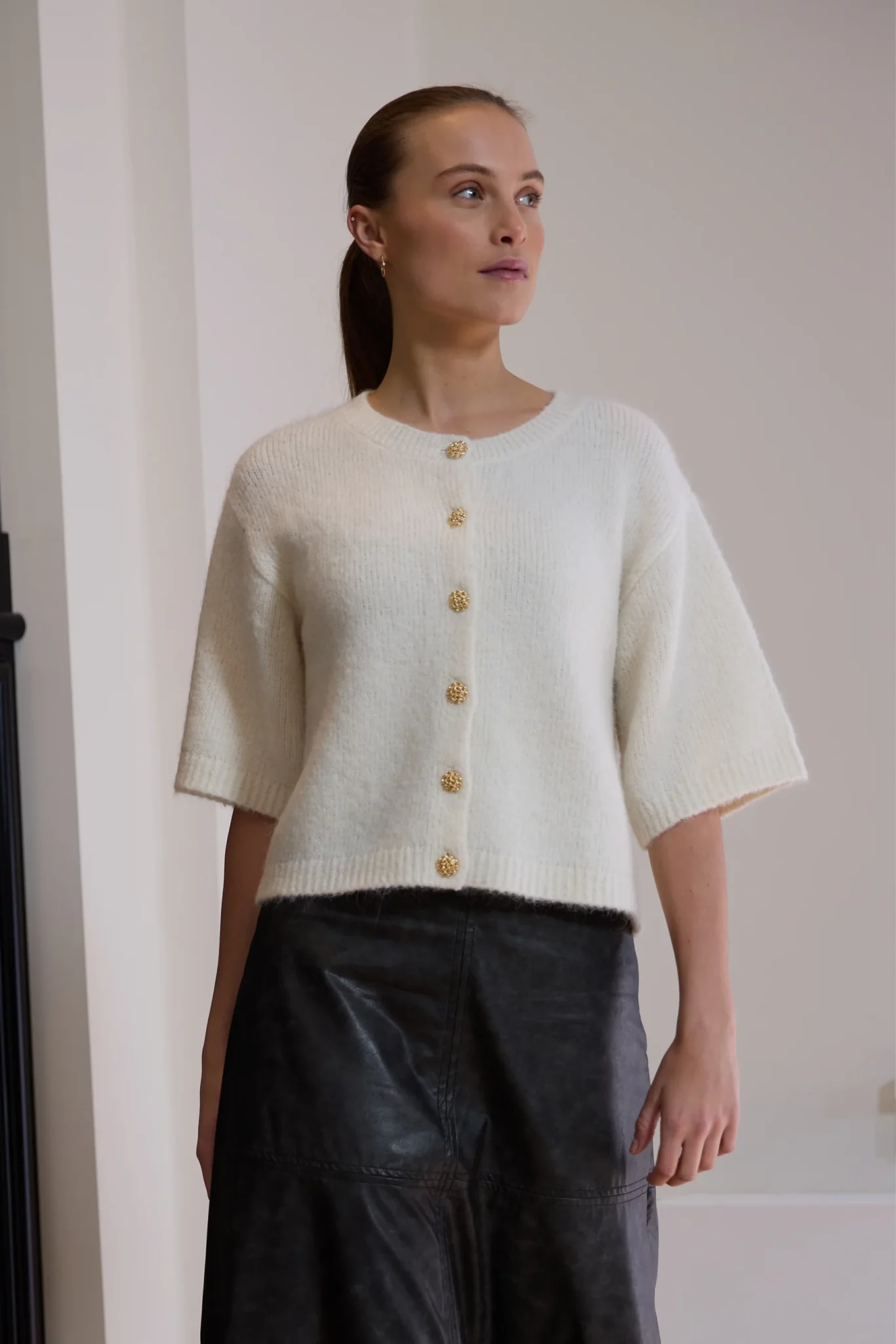 Pehmeä lyhythihainen alpakkaneule.
