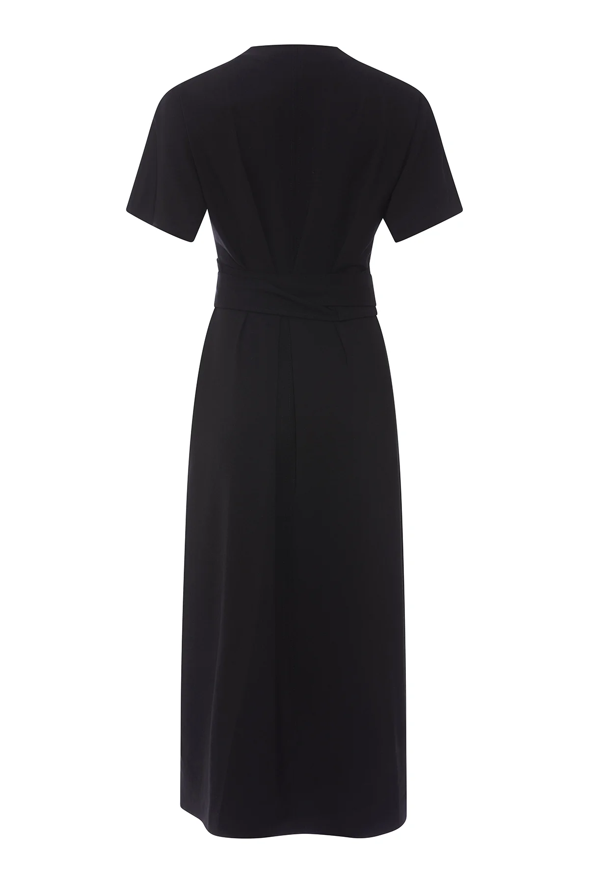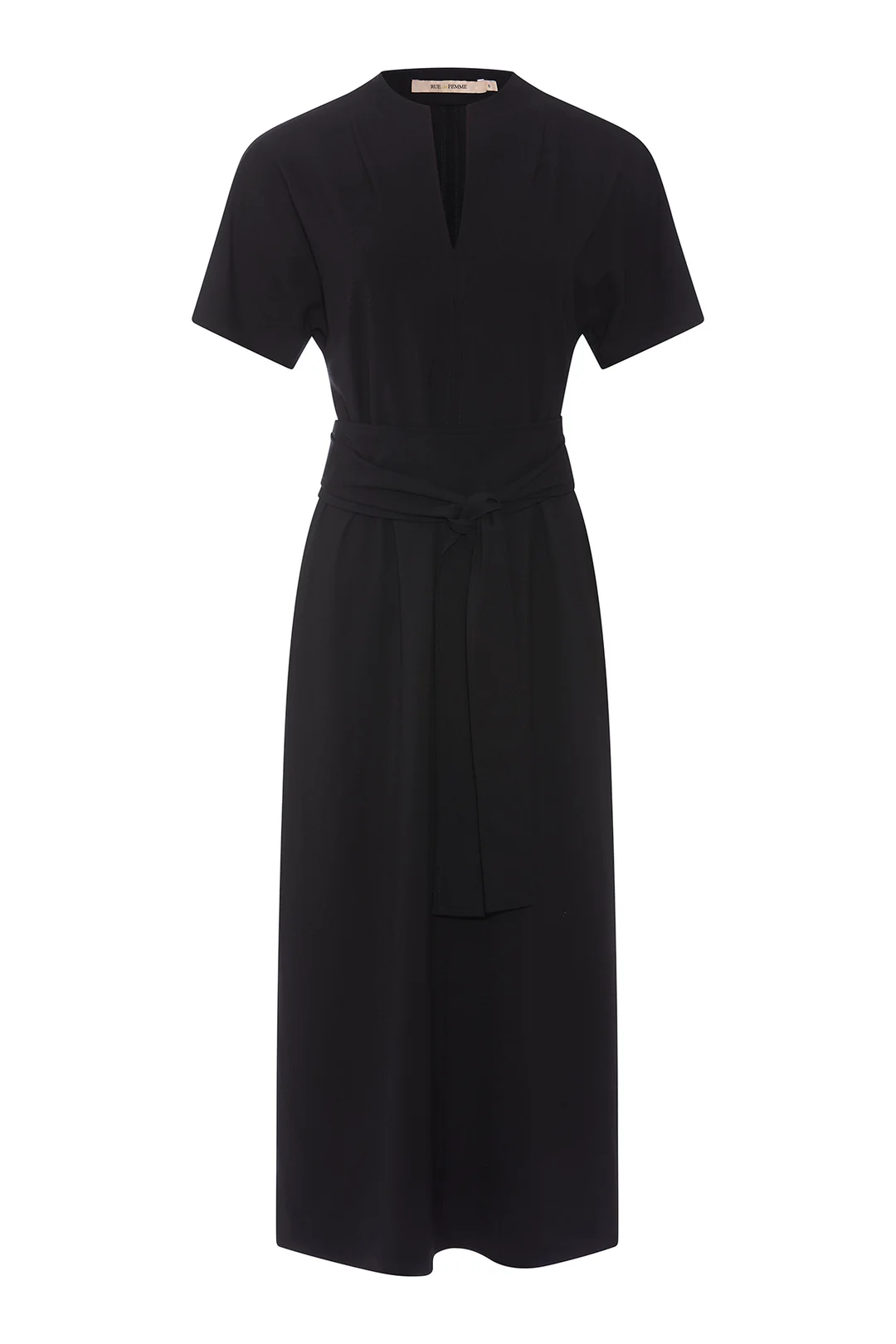 Näyttävä, lyhythihainen mekko, jossa solmittava vyö. Mukavaa joustavaa ja pehmeää materiaalia joka laskeutuu ja liikkuu kauniisti. V-pääntie.