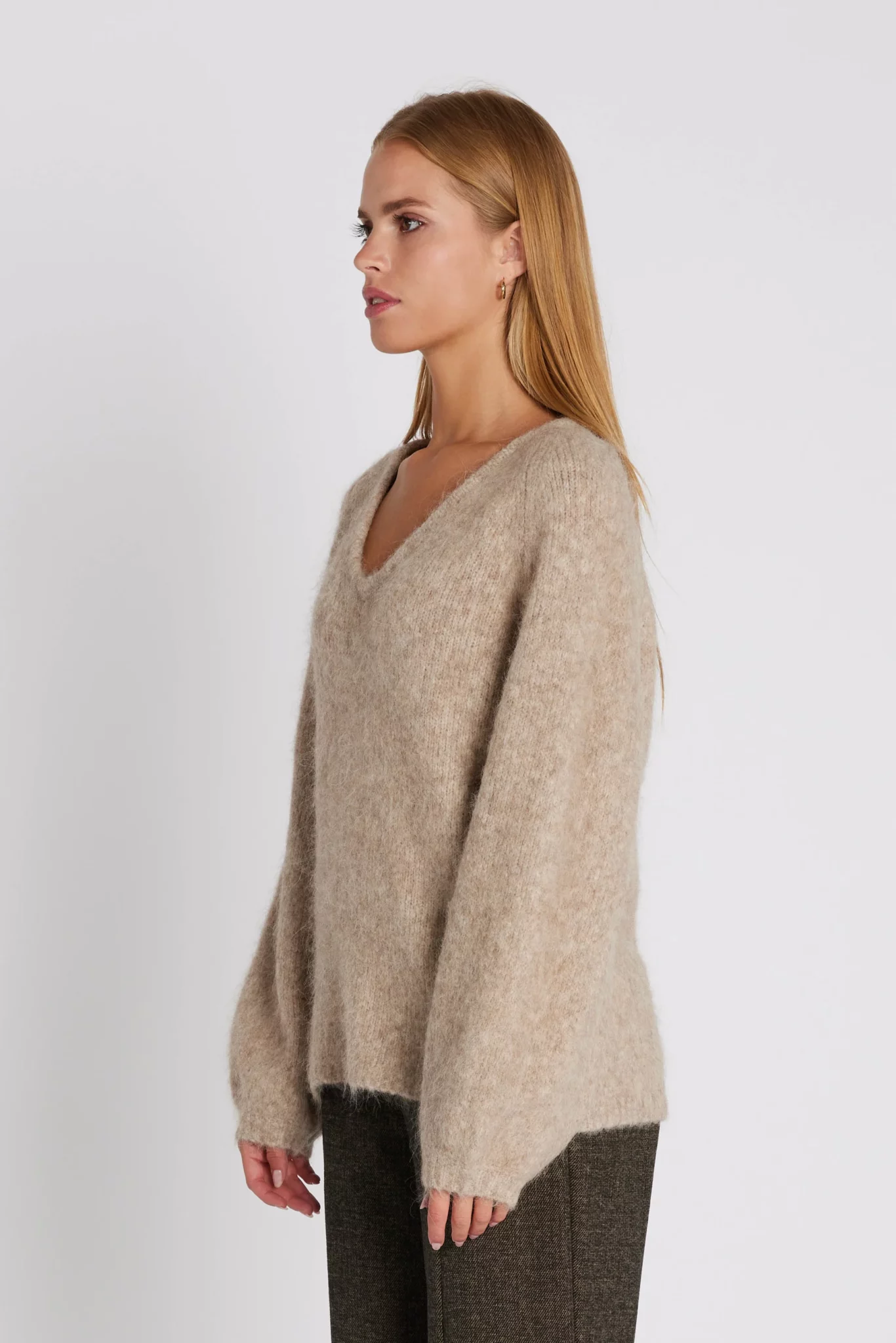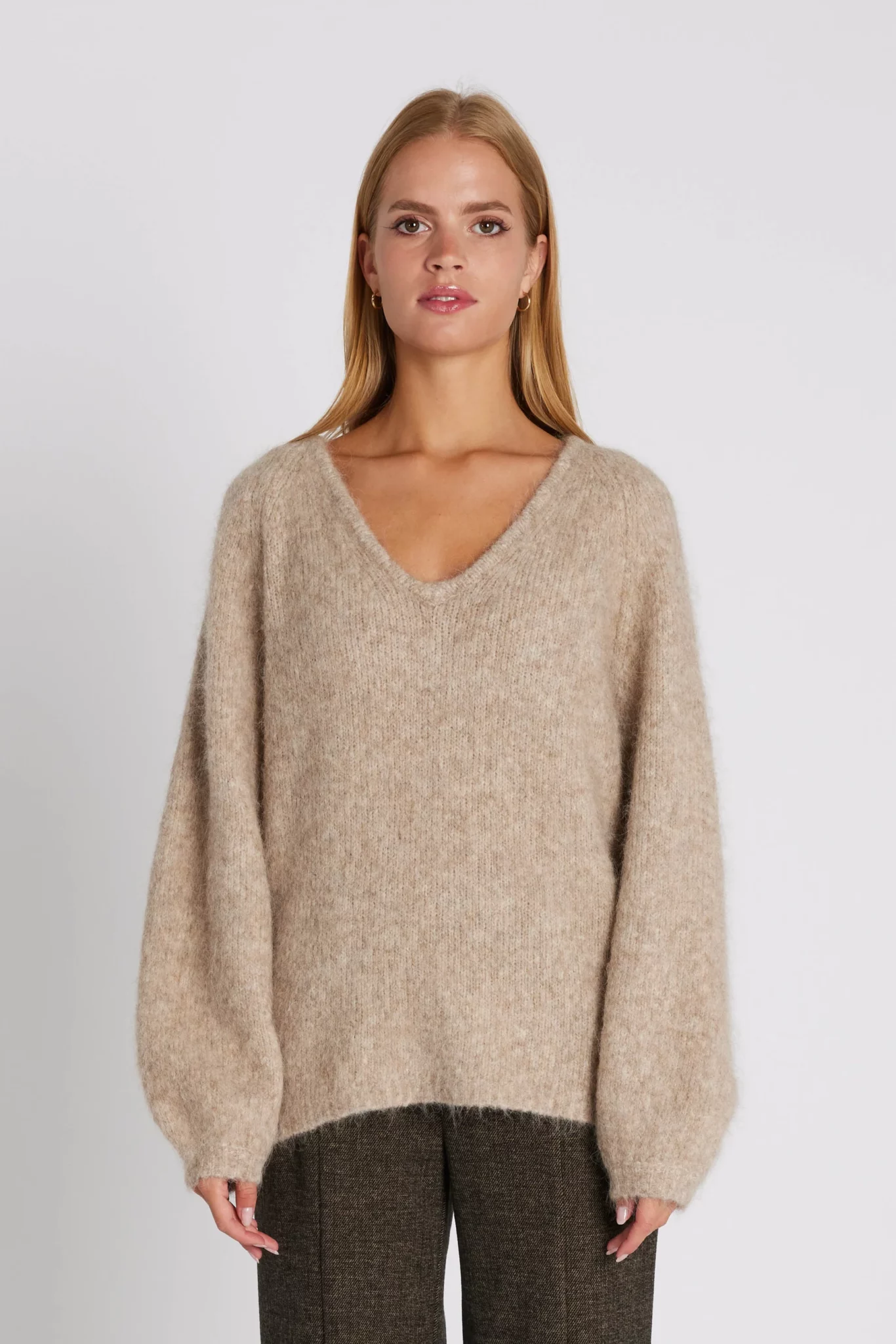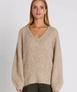 Ihastuttava Rue de Femme alpakkaneule. Väljämitoituksinen neule runsailla pallohihoilla. V-pääntie.