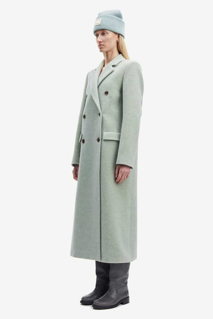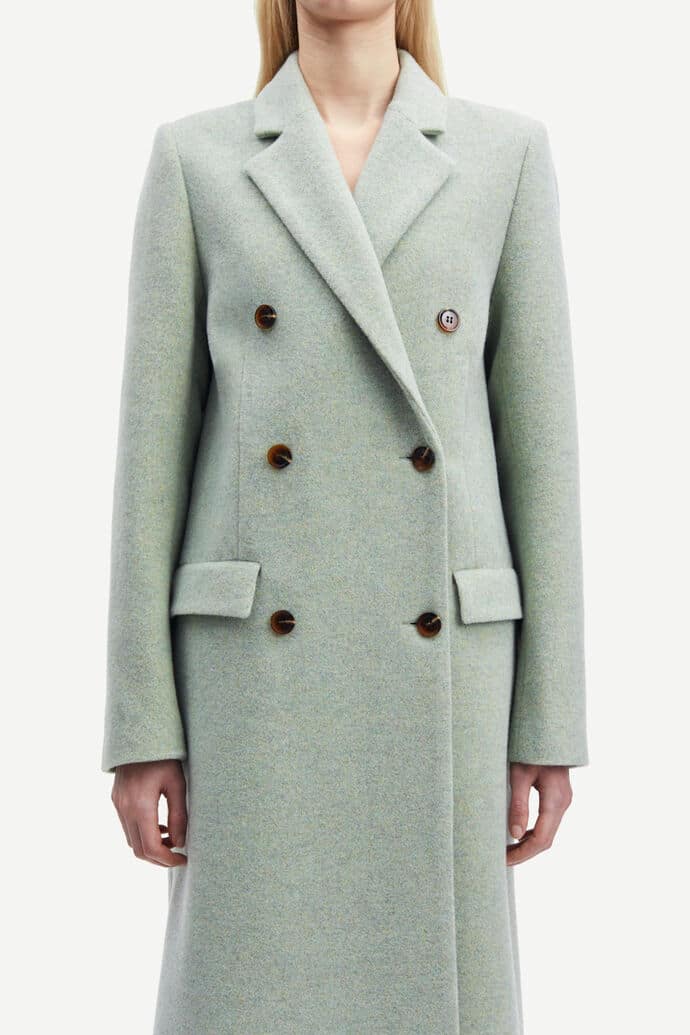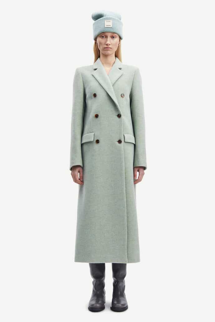 Upea, täyspitkä Samsoe & Samsoe villakangastakki on valmistettu kierrätysvillasta.
