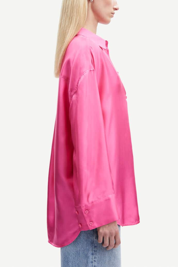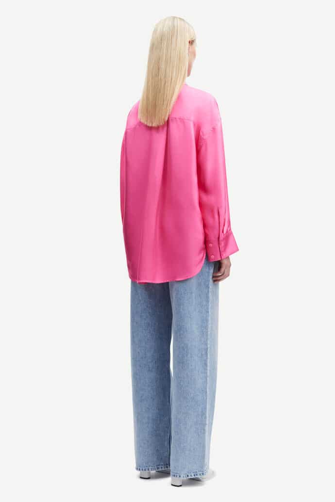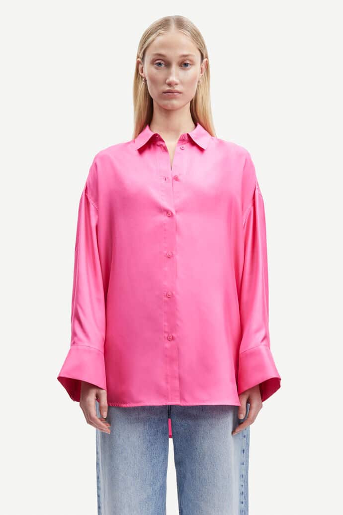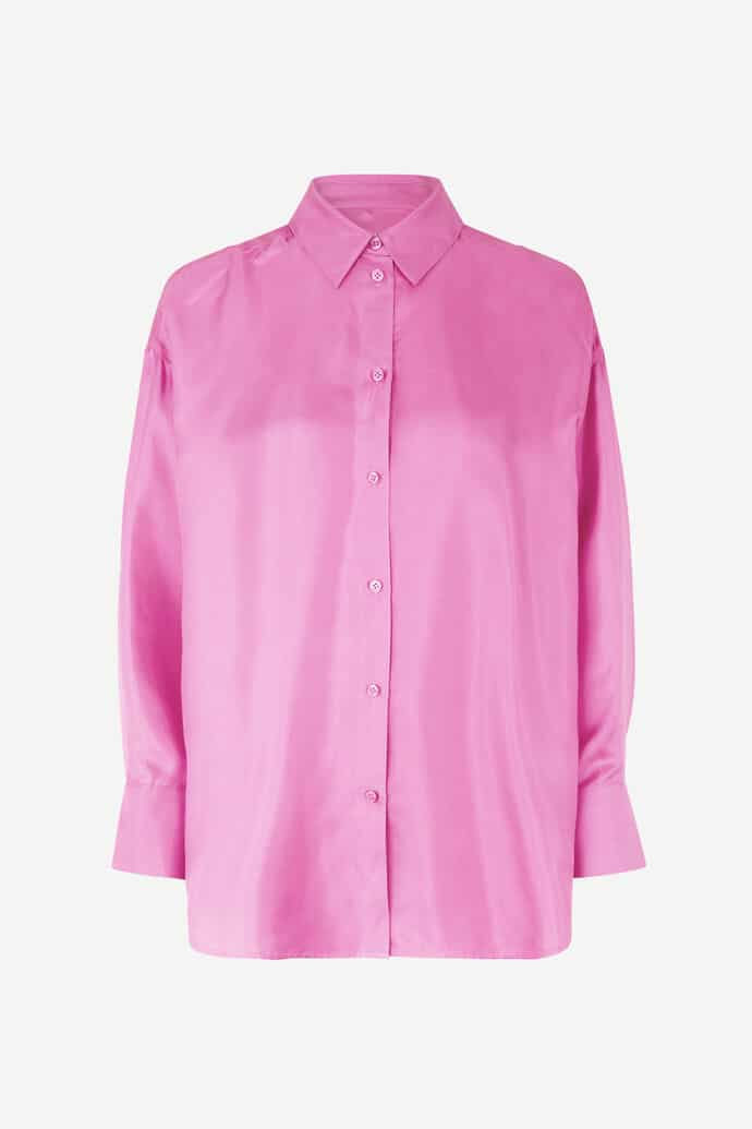 Ihastuttava Samsoe & Samsoe paitapusero 100% silkkiä. Väljässä puserossa on nappikiinnitys sekä takaa pidempi helma. Silkkisen pehmeä pusero vaativaankin tilaisuuteen.