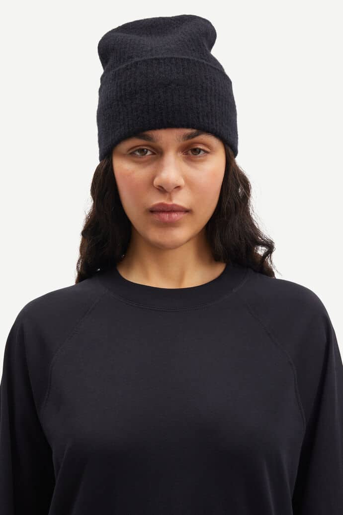 Lämmin Samsoe & Samsoe Nor -pipo. Pipo on tehty pehmeästä alpakka-merinosekoitteesta. Ribbineulos tekee piposta joka päähän sopivan.