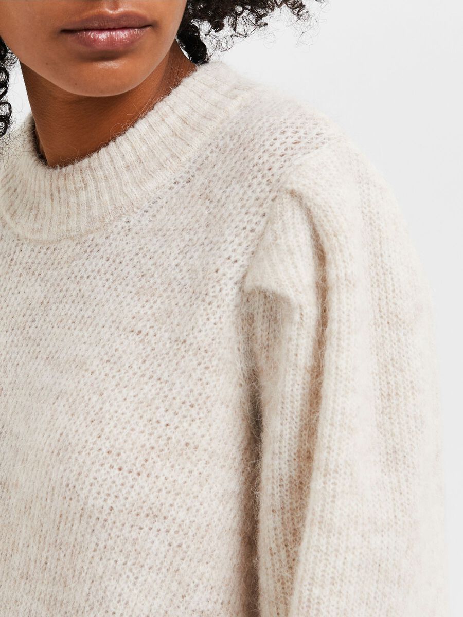 Naisten neulemekko. Pehmeä Selected Femme neulemekko ihanaa alpakkasekoitetta. Trendikkäät puhvihihat.