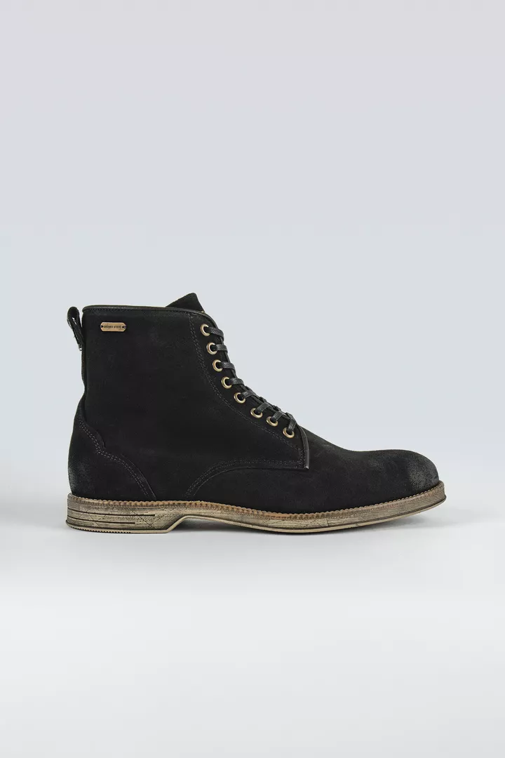 Miesten kengät. Mokkanahkaiset korkeavartiset Sneaky Steve kengät. Maiharityyppisissä laadukkaissa nahkakengissä on nauhoitus sekä kestävä kumipohja. Käsintehty viimeistely tekee joka kenkäparista uniikin.