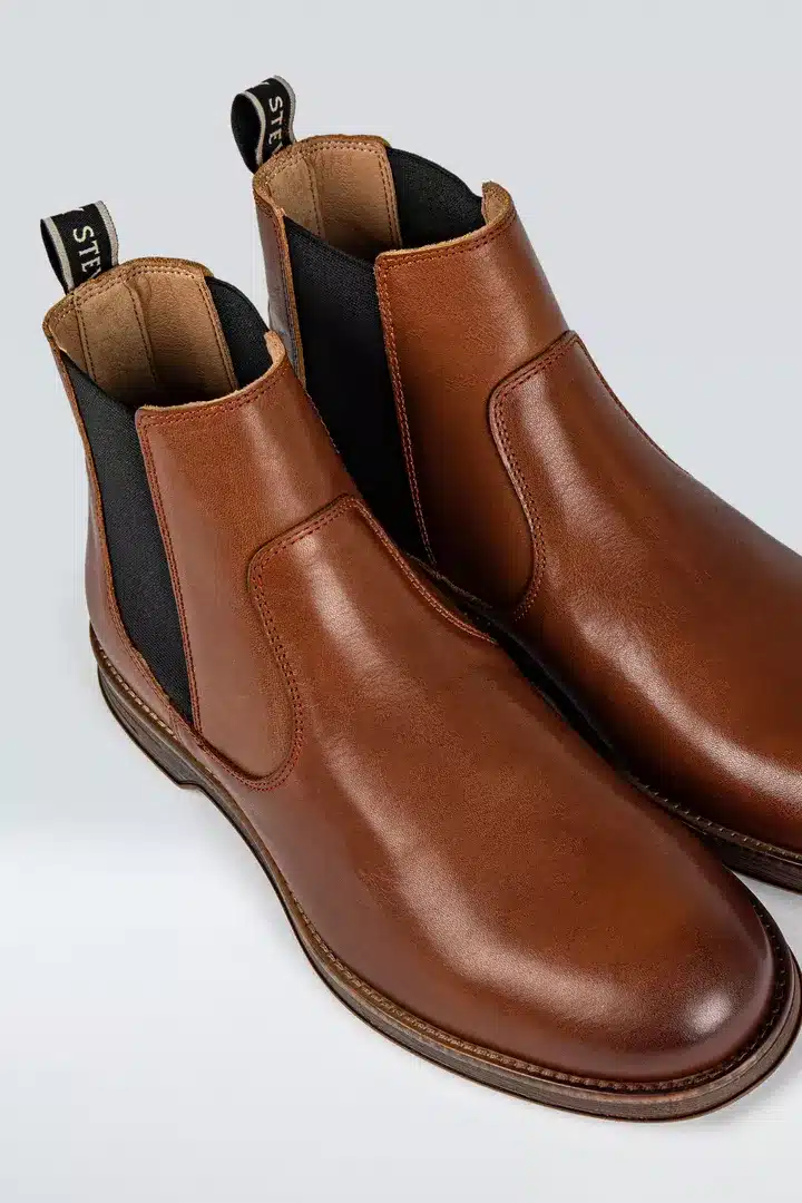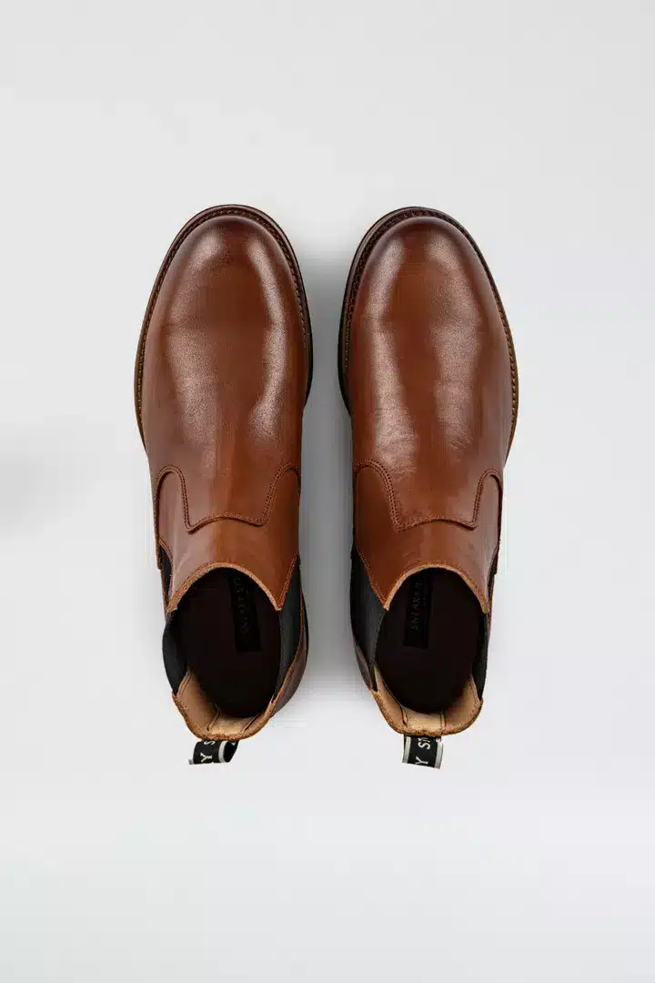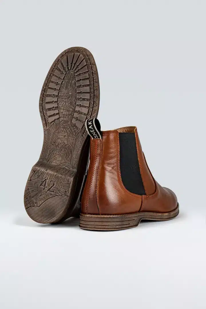 Miesten nahkakengät. Laadukkaat Sneaky Steve chelsea -nahkakengät. Kengän varsissa joustavat kuminauhat pukemista helpottamaan. Kestävä kumipohja.