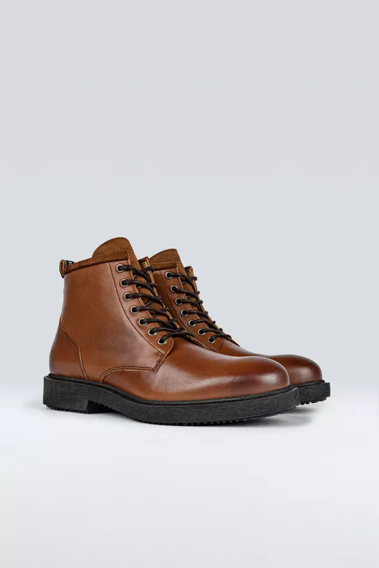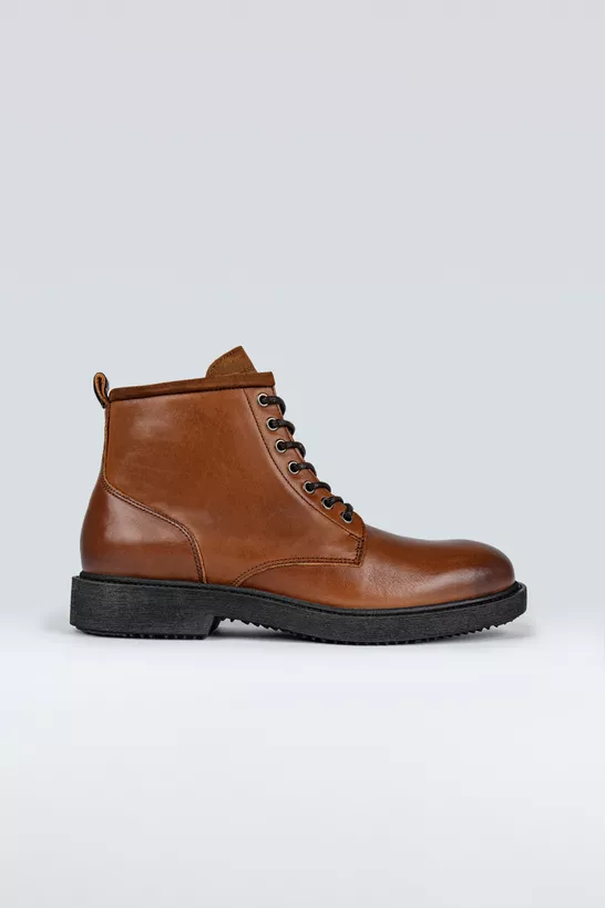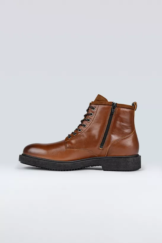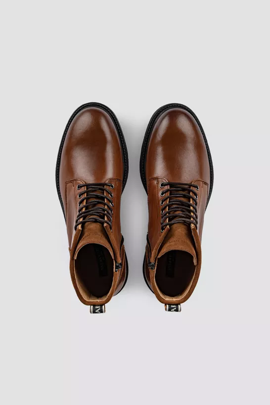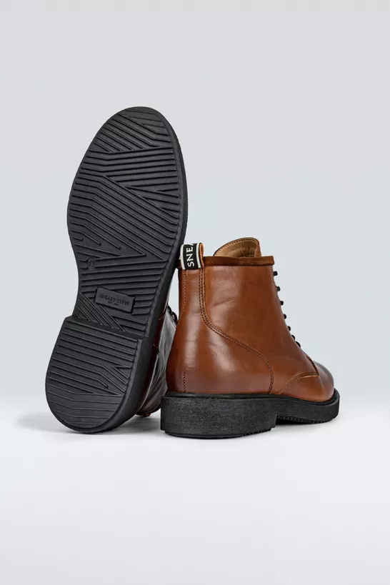 Monikäyttöiset, laadukkaat Sneaky Steve nahkamaiharit konjakin sävyssä. Sivuvetoketju. Kestävä kumipohja.