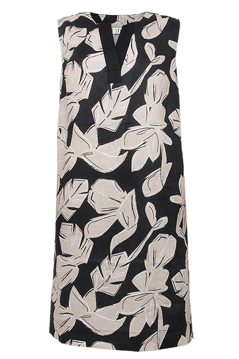 Suomessa suunniteltu STI kuosillinen pellavamekko.
