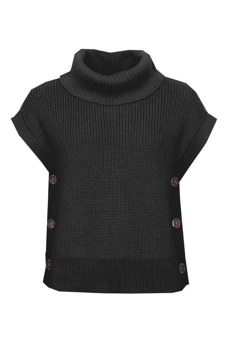 Naisten neuleliivi. Suomessa suunniteltu kaunis STI poolokaulusliivi. Neuleessa on väljä poolokaulus sekä koristenapit sivuilla antamassa lisänäköä.