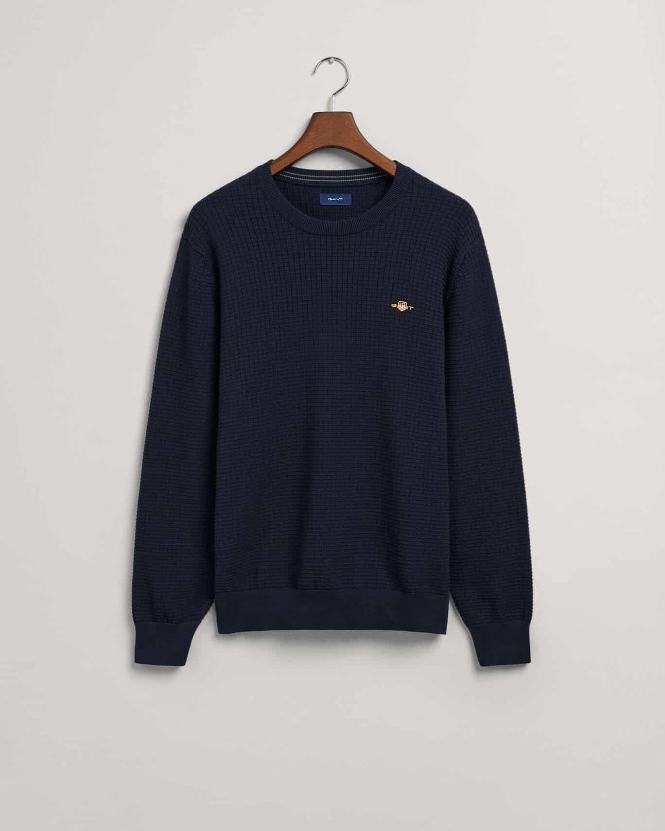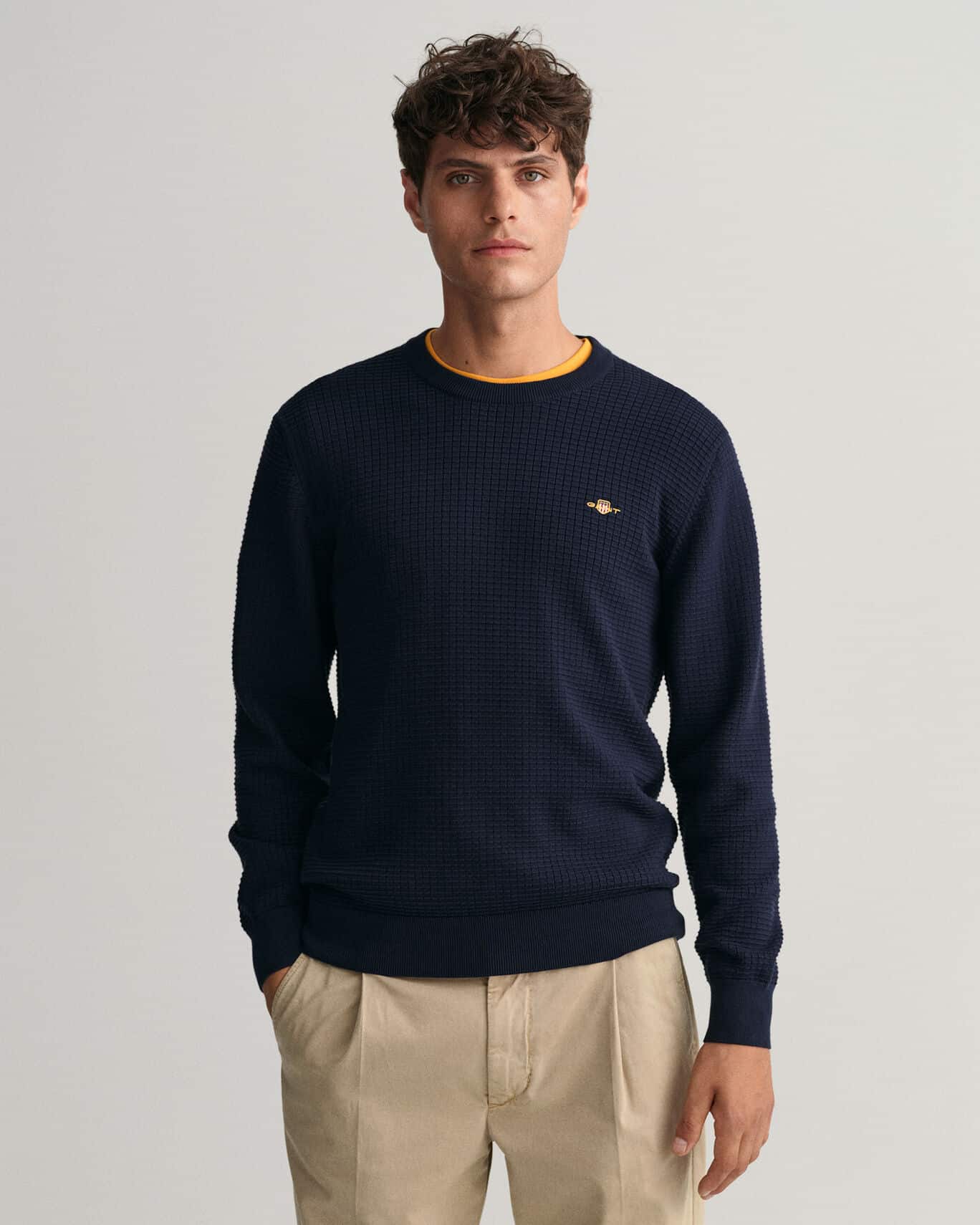 Miesten neule. Tekstuuripintainen Gant puuvillaneule. Rinnassa Archive Shield logo.