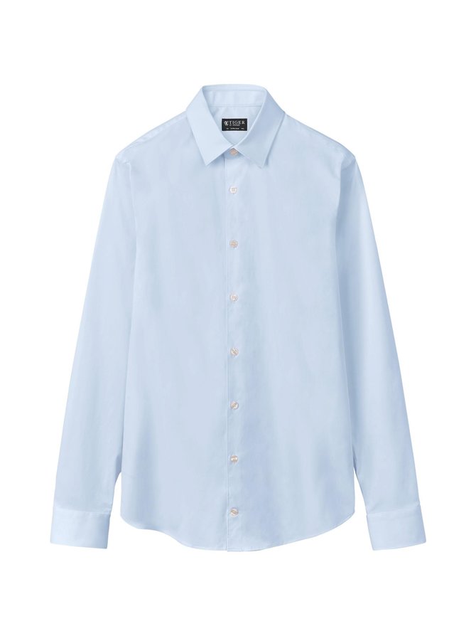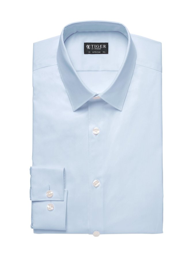 Miesten paita. Tiger of Sweden siniharmaa business-paita on kapeaa mitoitusta. Paidassa on valkoiset napit.