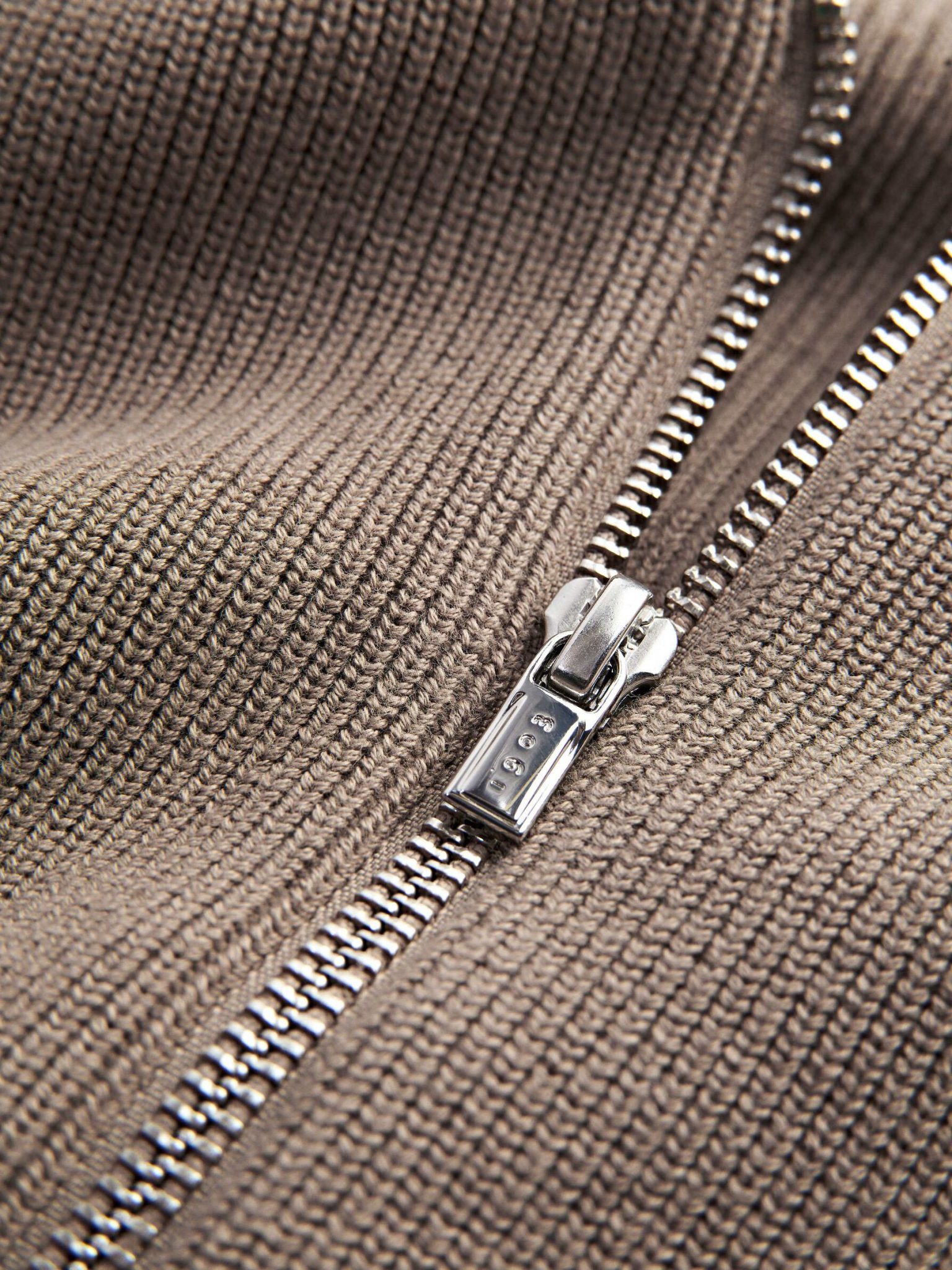 Miesten neuletakki. Laadukas Tiger of Sweden ribbineuletakki luomupuuvillaa. Vetoketjukiinnitys.