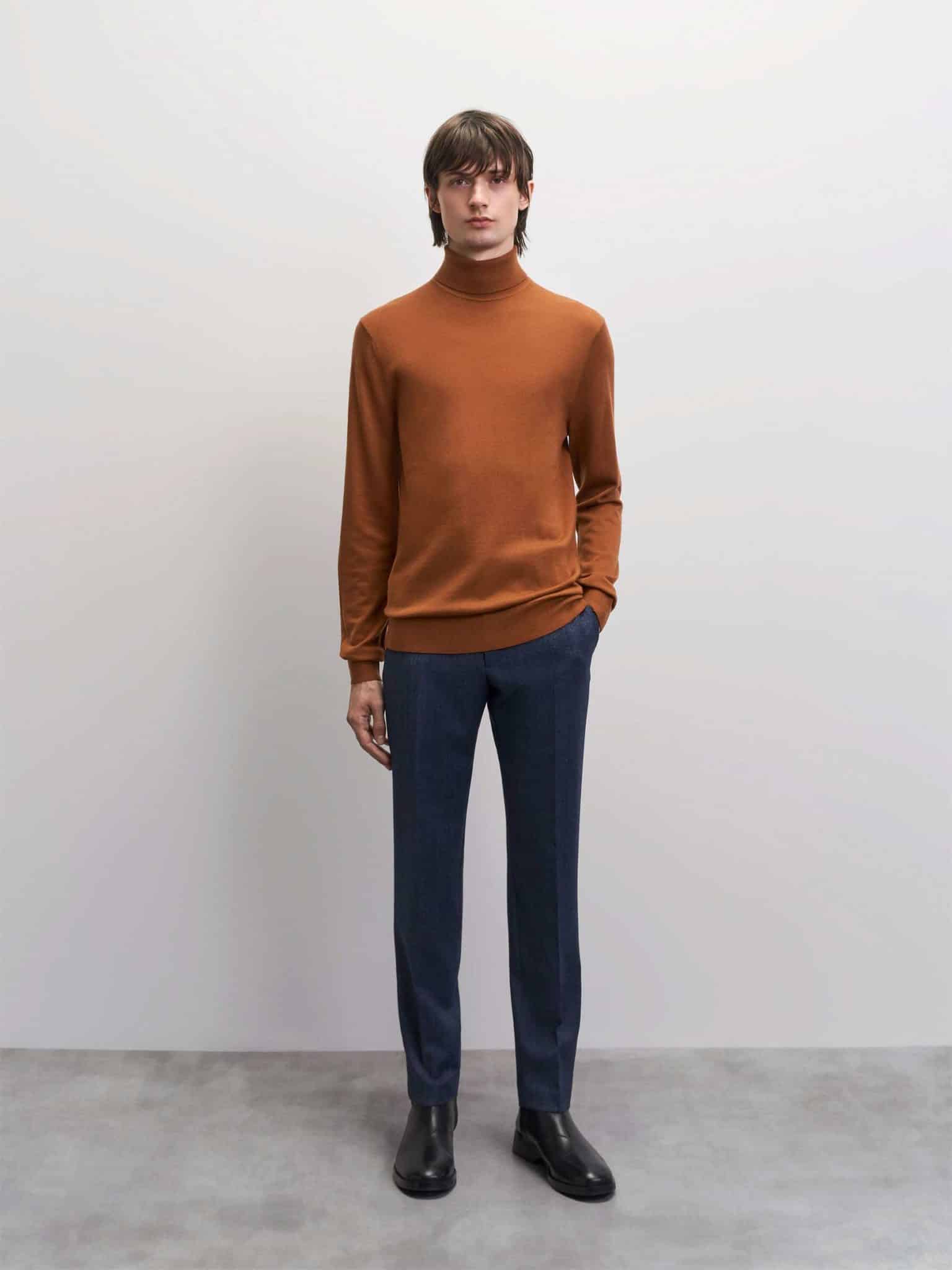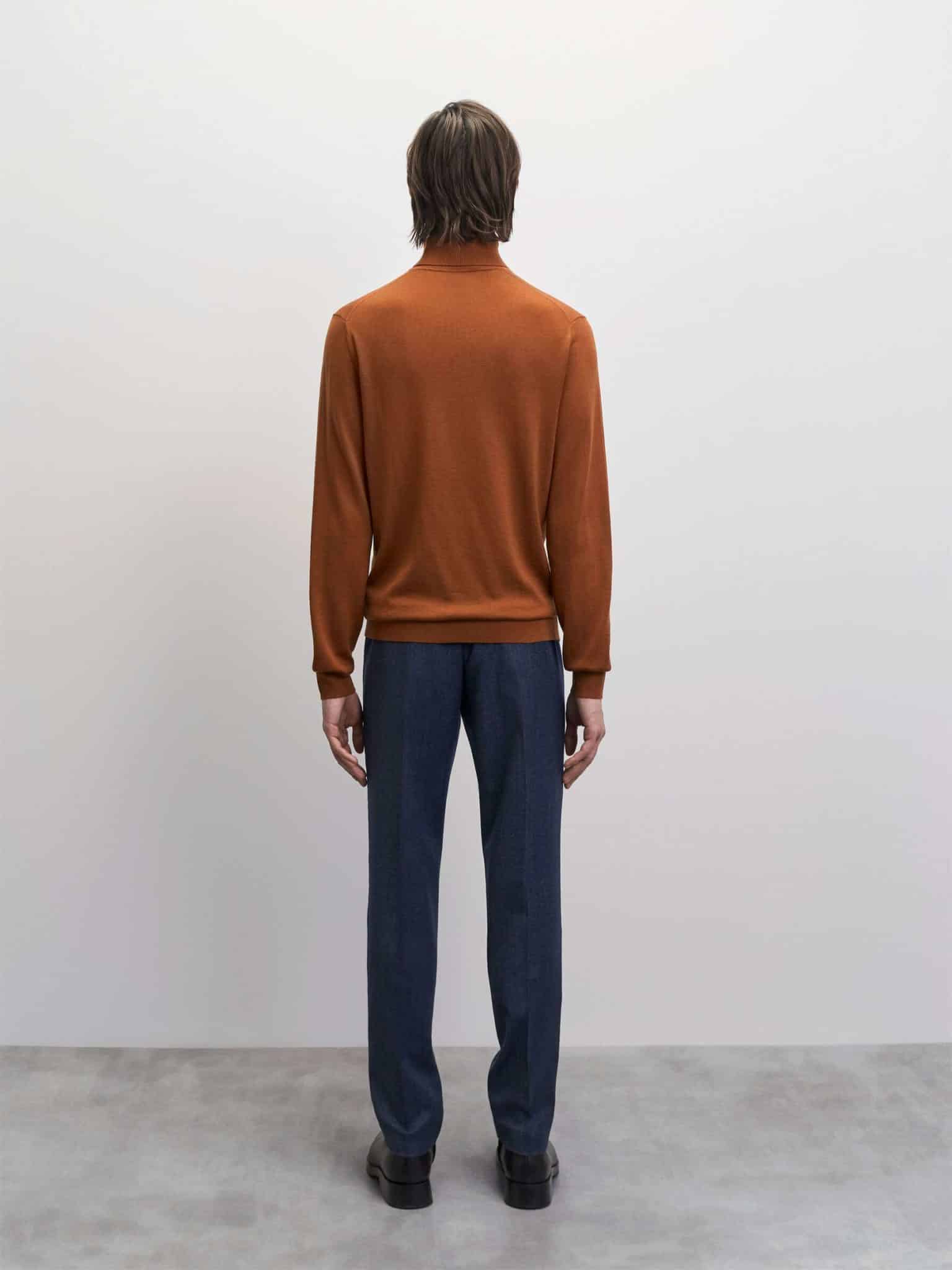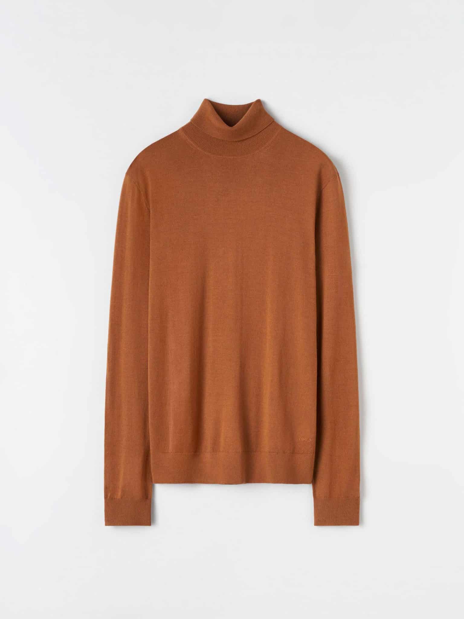 Miesten neule. Merinovillainen Tiger of Sweden pooloneule. Poolokaulus sekä Tiger of Sweden 1903 logo helmassa