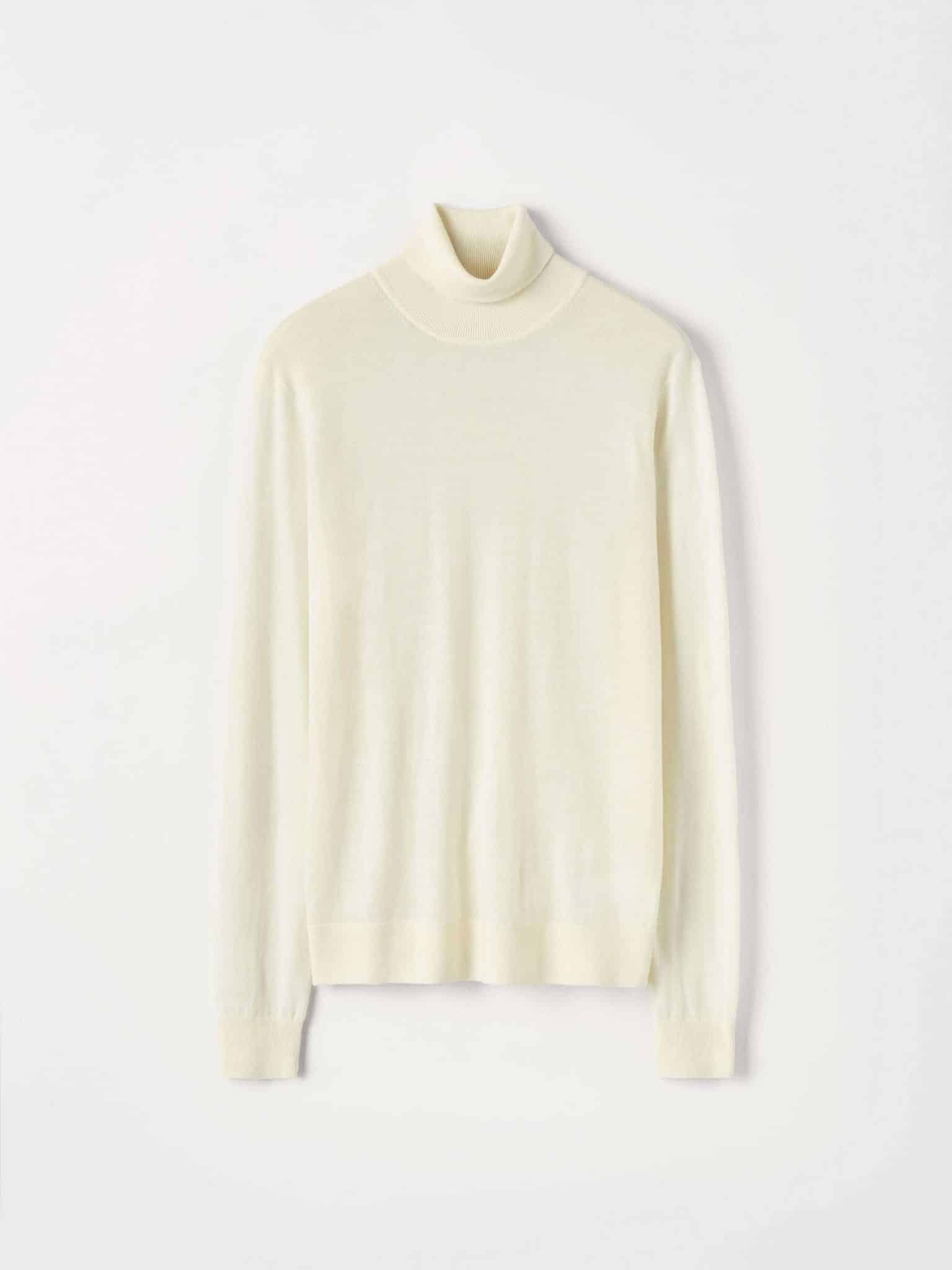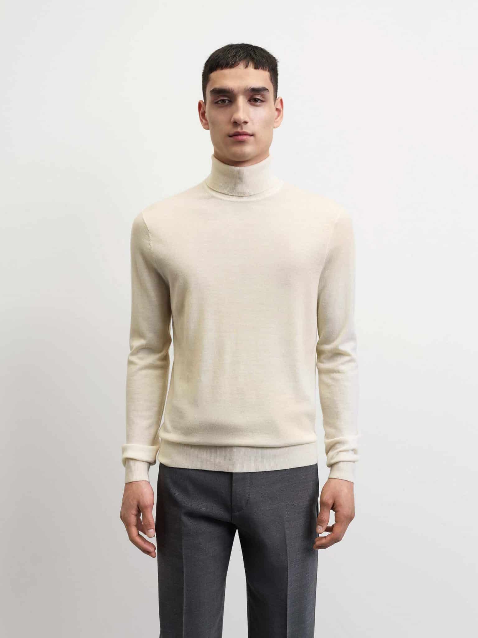 Miesten neule. Merinovillainen Tiger of Sweden pooloneule. Poolokaulus sekä Tiger of Sweden 1903 logo helmassa