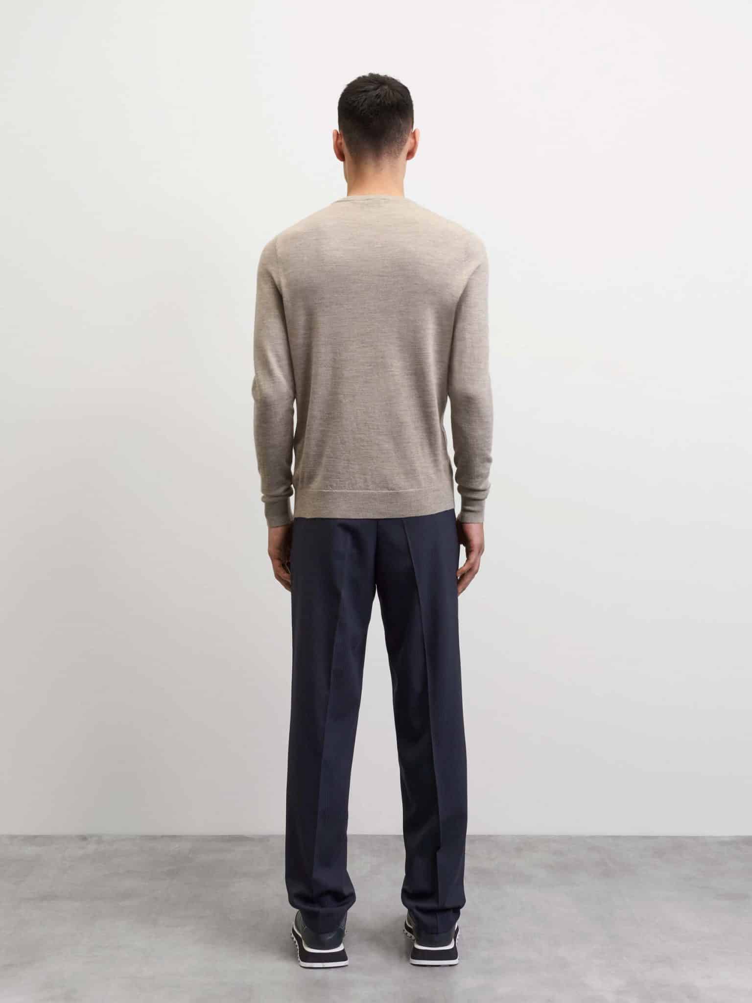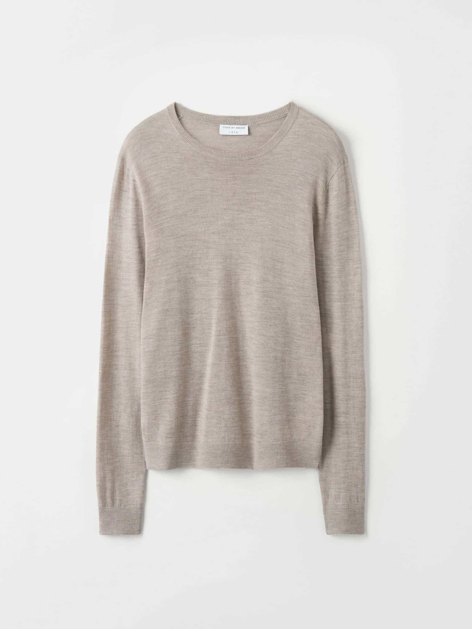 Miesten neule. Ultrakevyt Tiger of Sweden merinovillaneule sopii ympärivuotiseen käyttöön. Pyöreä pääntie. Helmassa 1903 brodeeraus.
