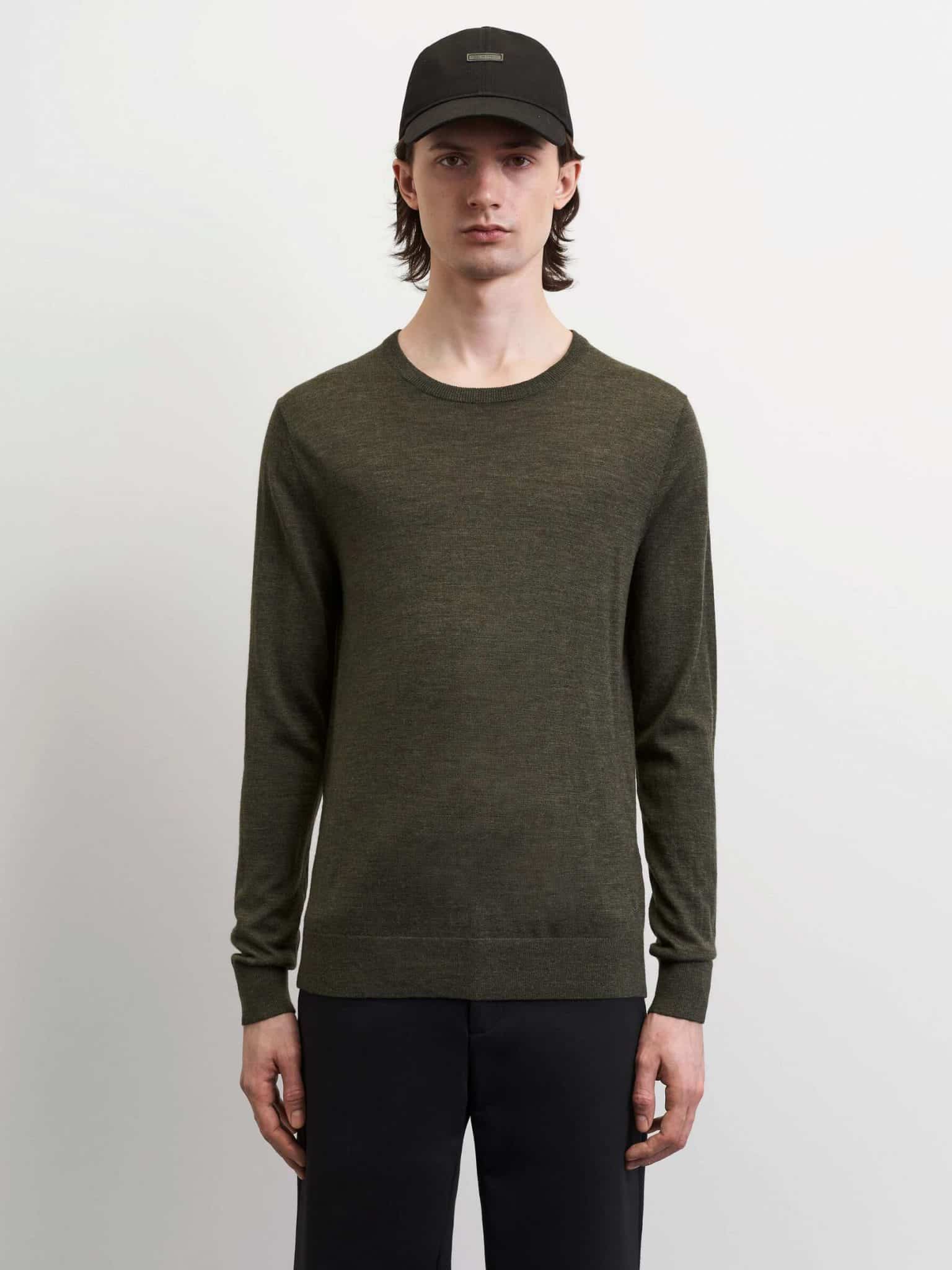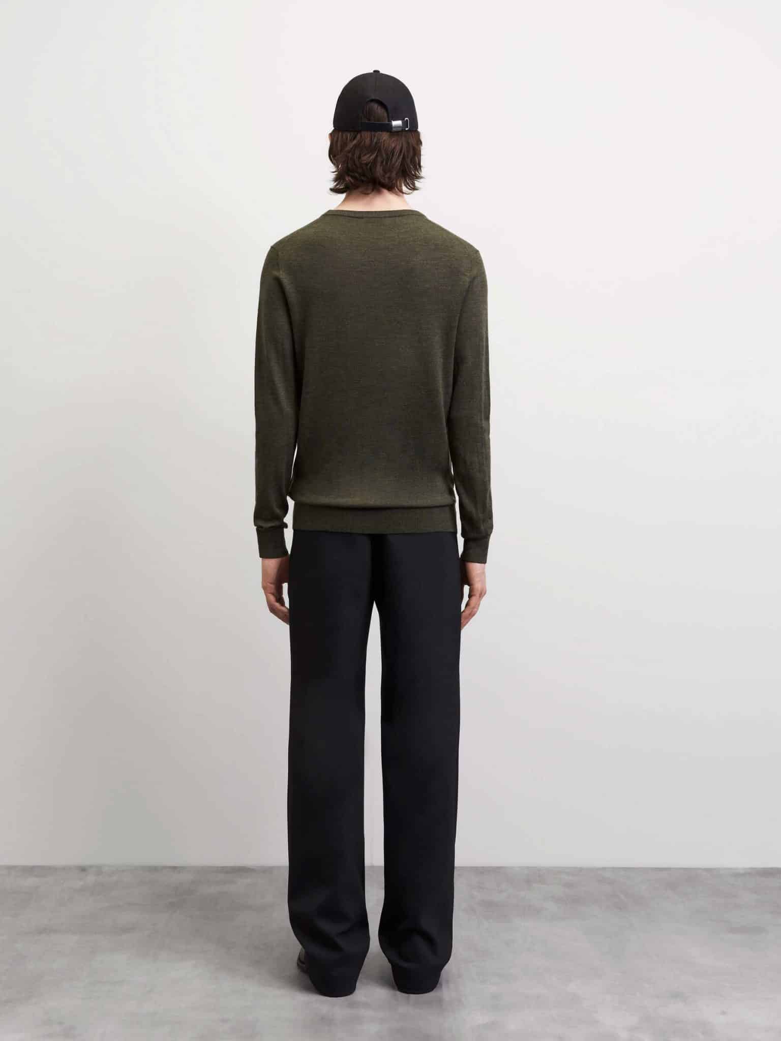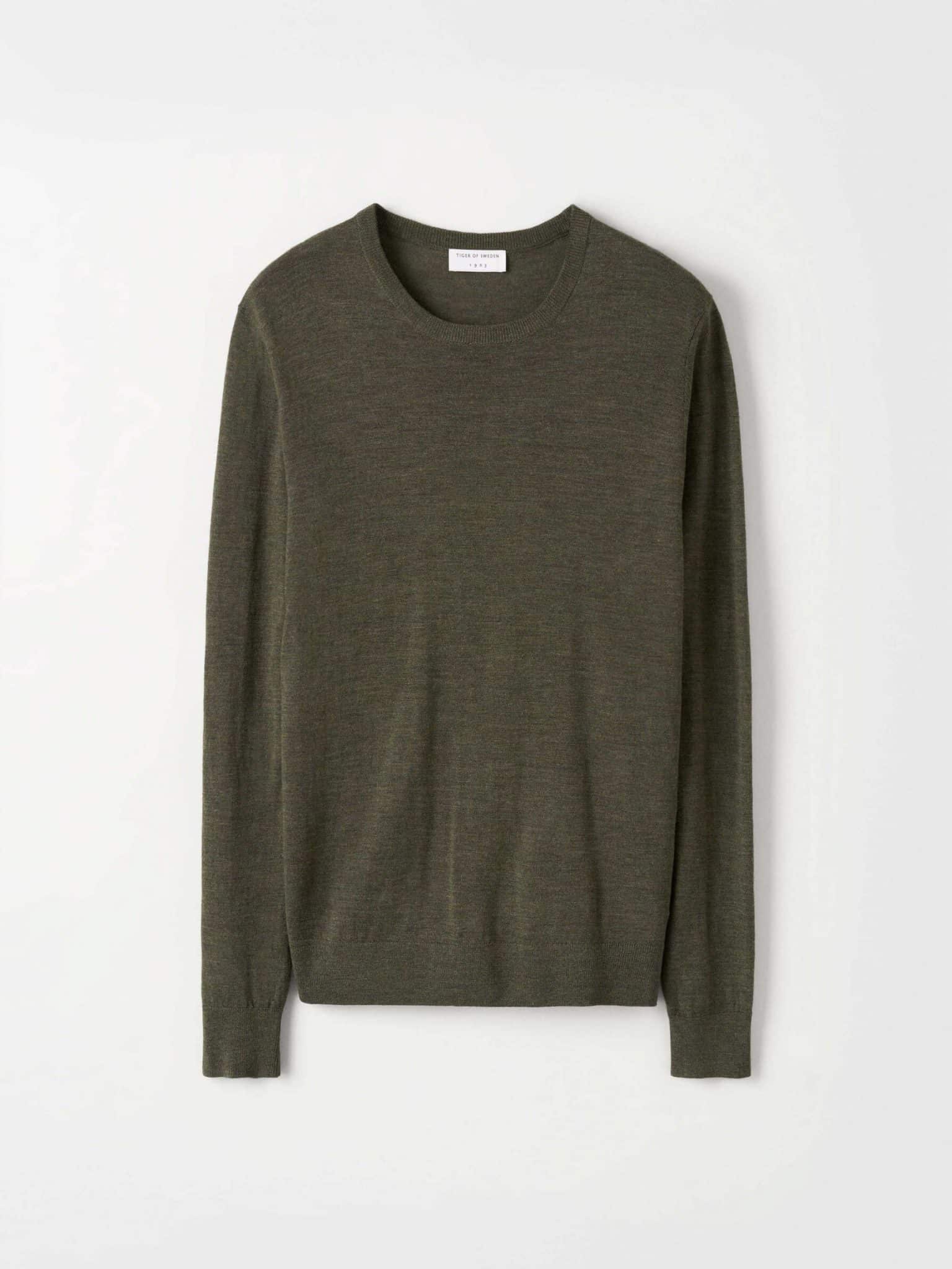 Miesten neule. Ultrakevyt Tiger of Sweden merinovillaneule sopii ympärivuotiseen käyttöön. Pyöreä pääntie. Helmassa 1903 brodeeraus.