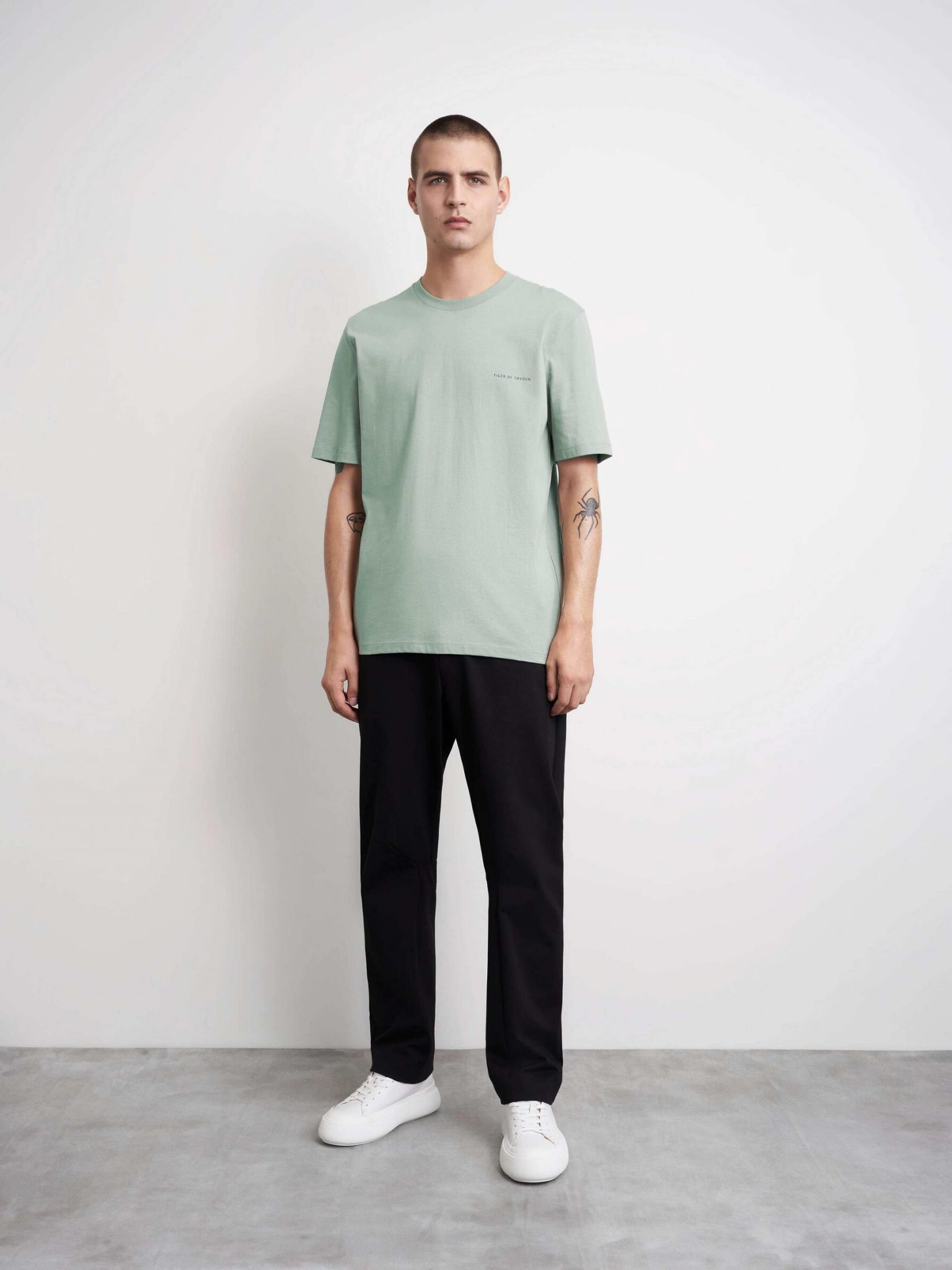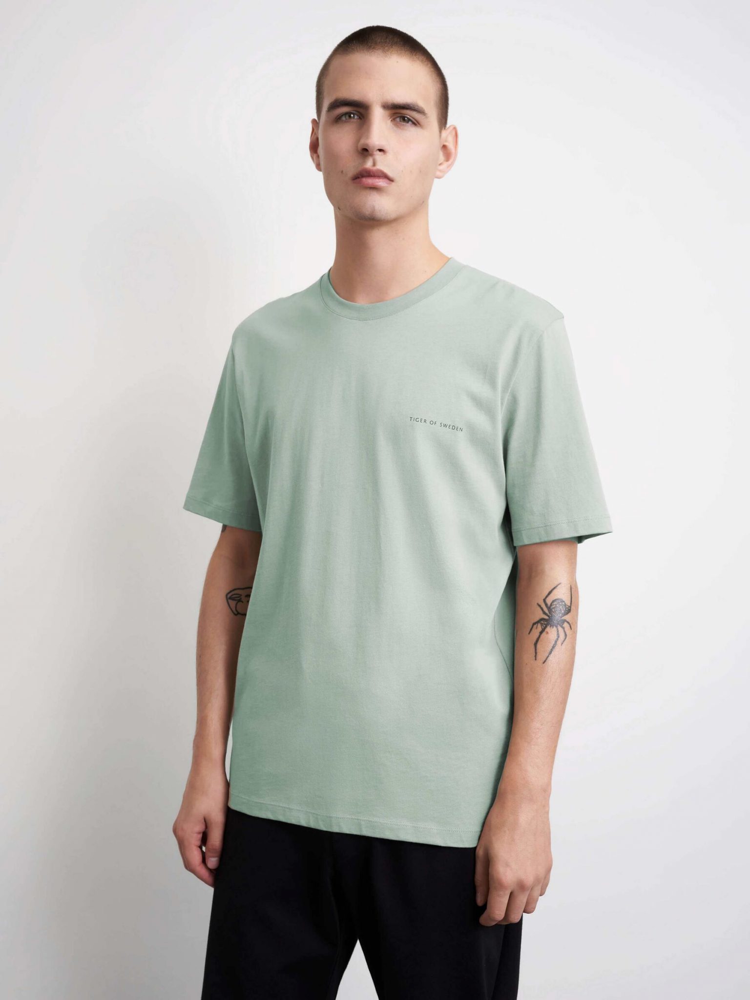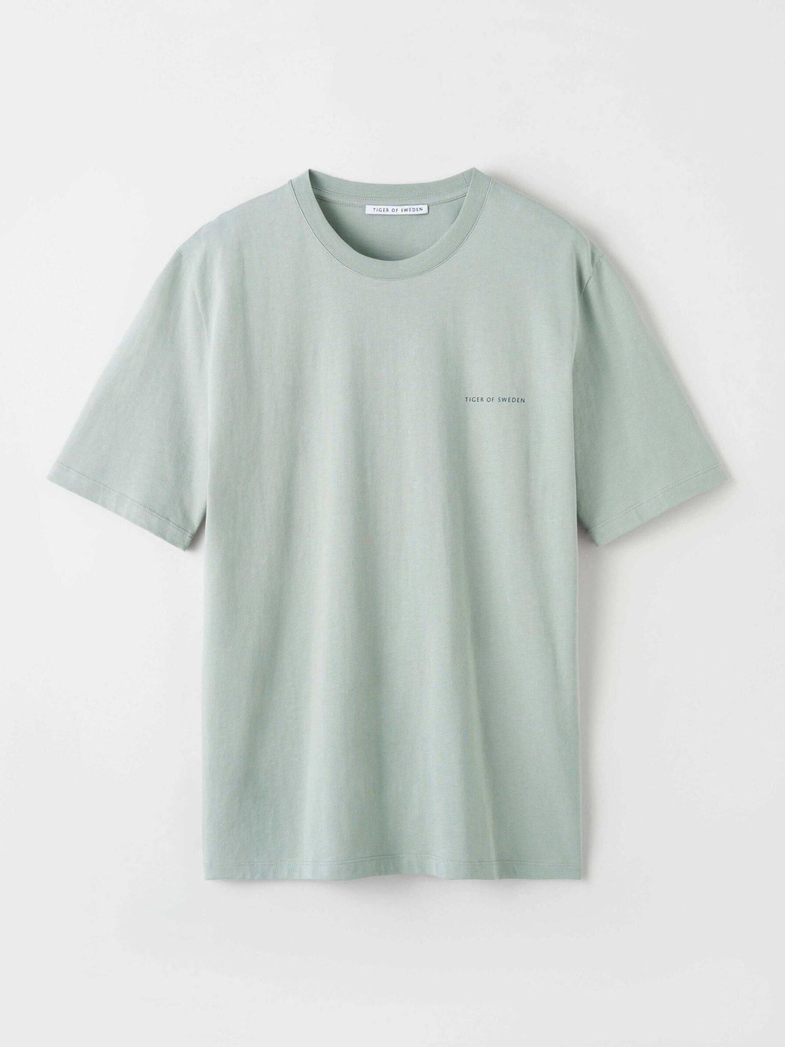 Miesten t-paita. Vaalea Tiger of Sweden logo t-paita. T-paidan rinnassa Tiger of Sweden logo.