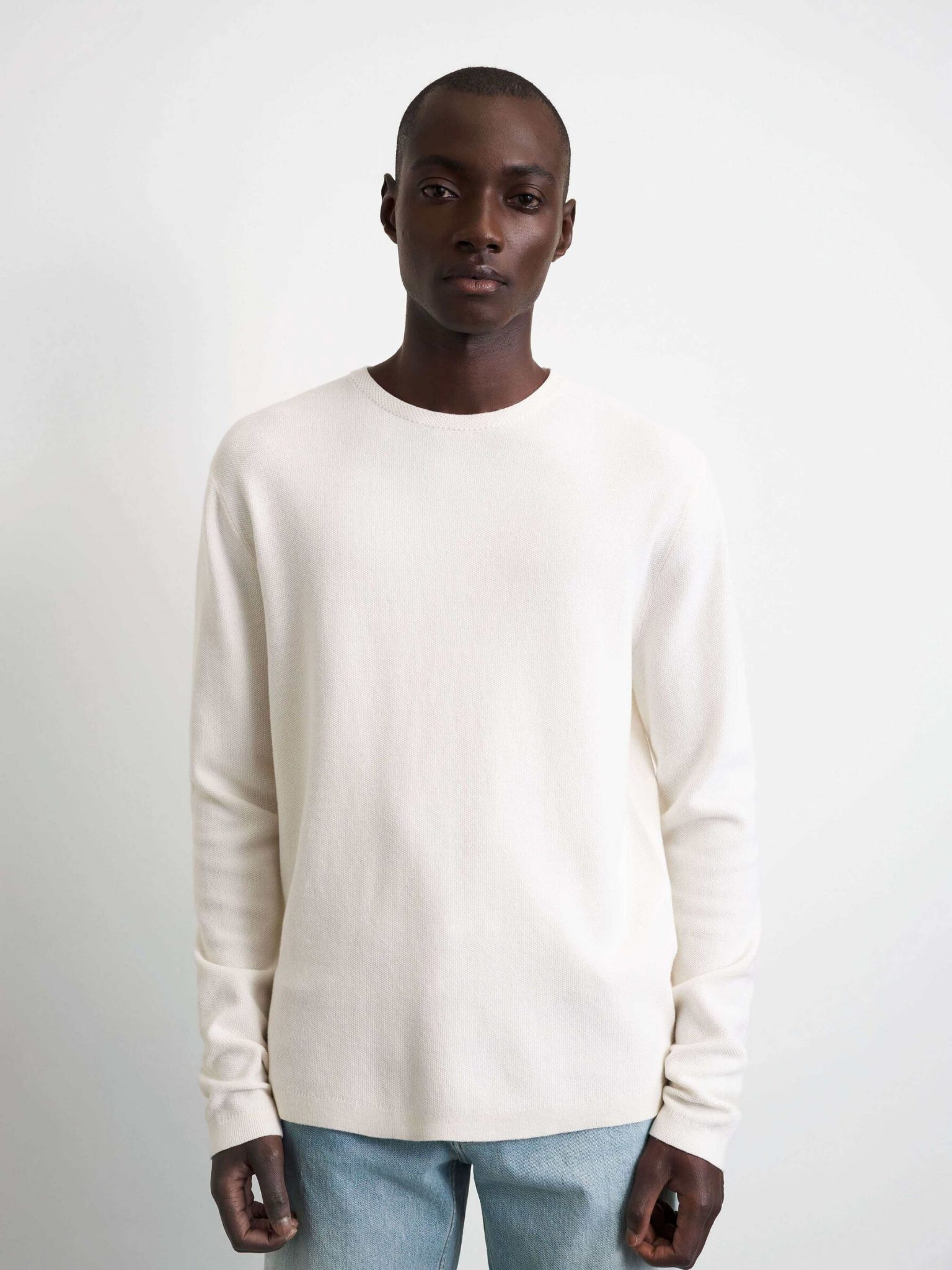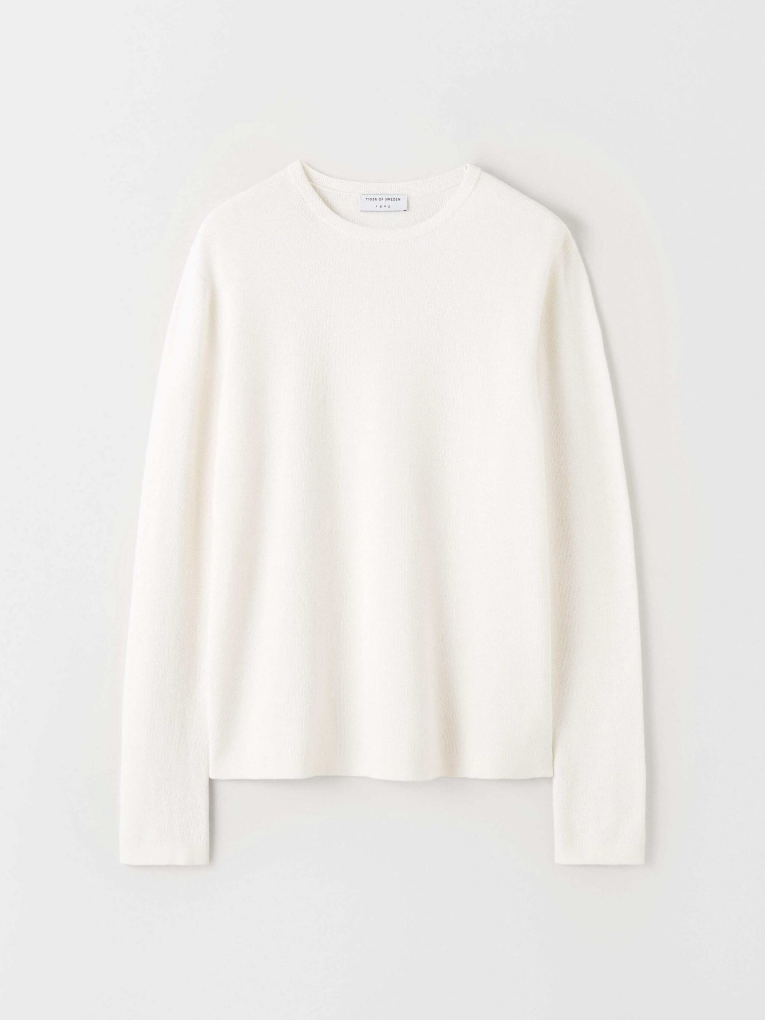 Miesten neule. Kevyt struktuuripintainen Tiger of Sweden kevät/kesäneule. Suoralinjaisessa neuleessa on pyöreä pääntie.