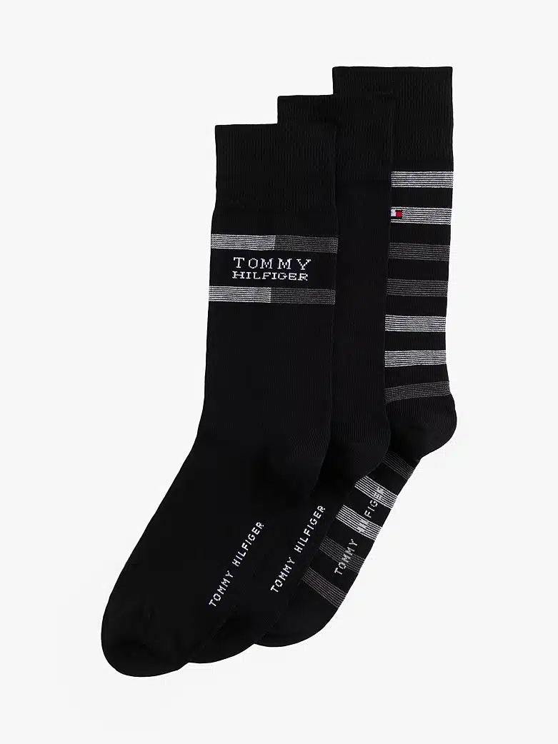 3-kappaletta Tommy Hilfiger sukkia lahjapakkauksessa.