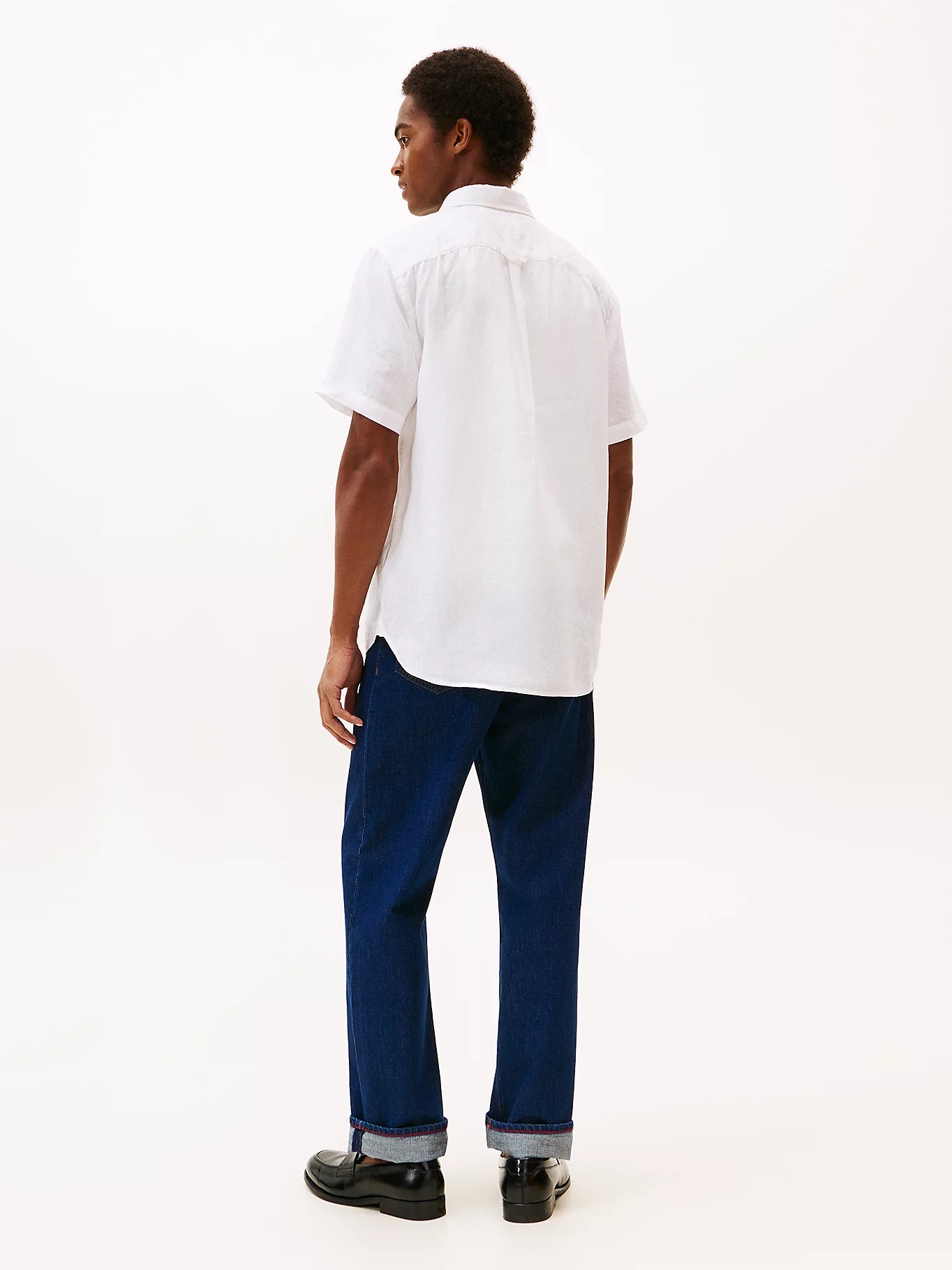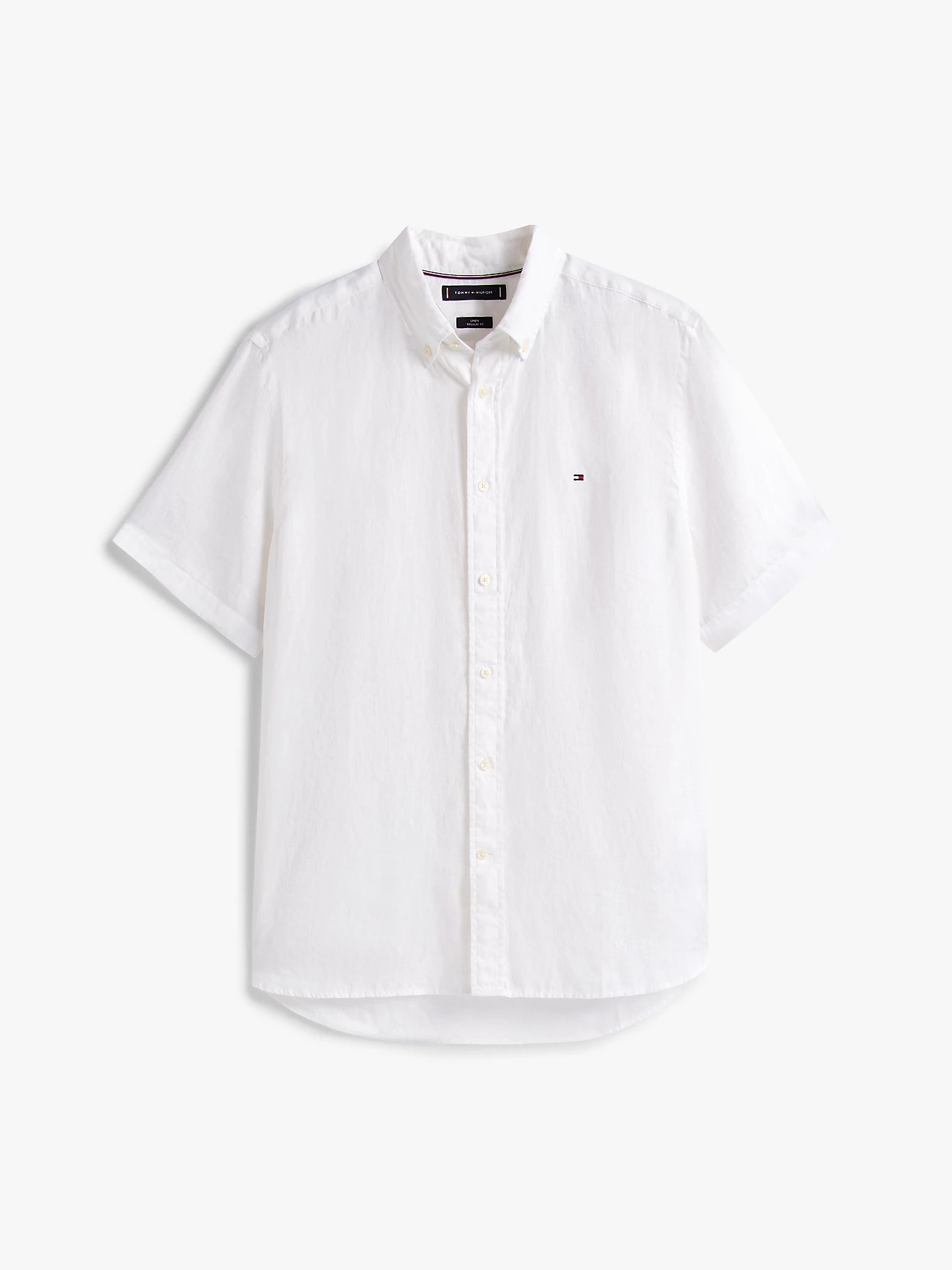 Tommy Hilfiger Regular Fit Washed Linen Short Sleeve Shirt White