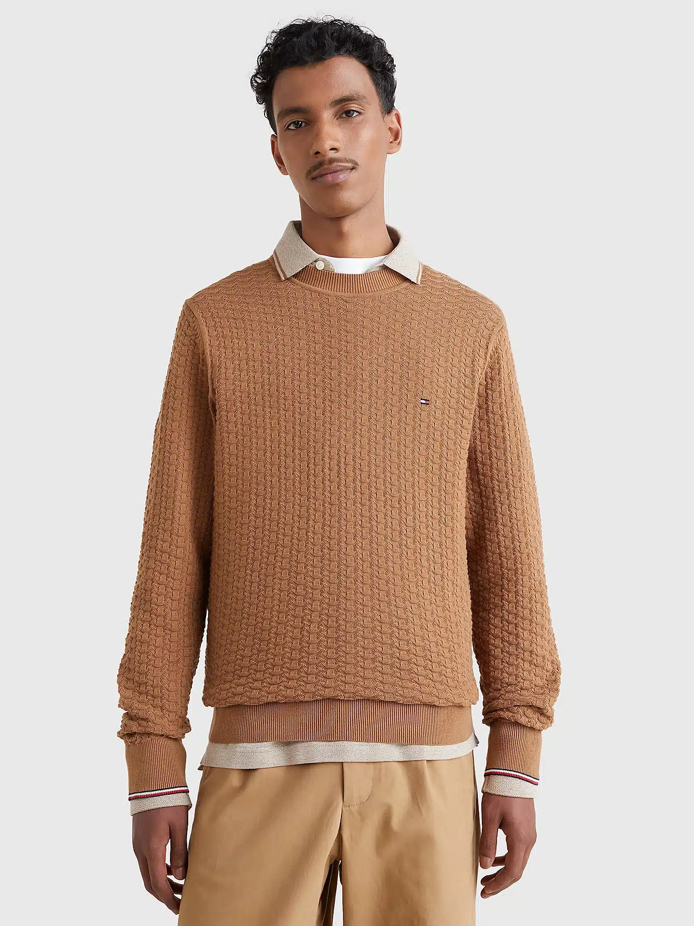 Miesten neule. Tyylikäs Tommy Hilfiger neule luomupuuvillaa. Neuleessa on struktuuripinta sekä Tommy Hilfiger lippulogo rinnassa.