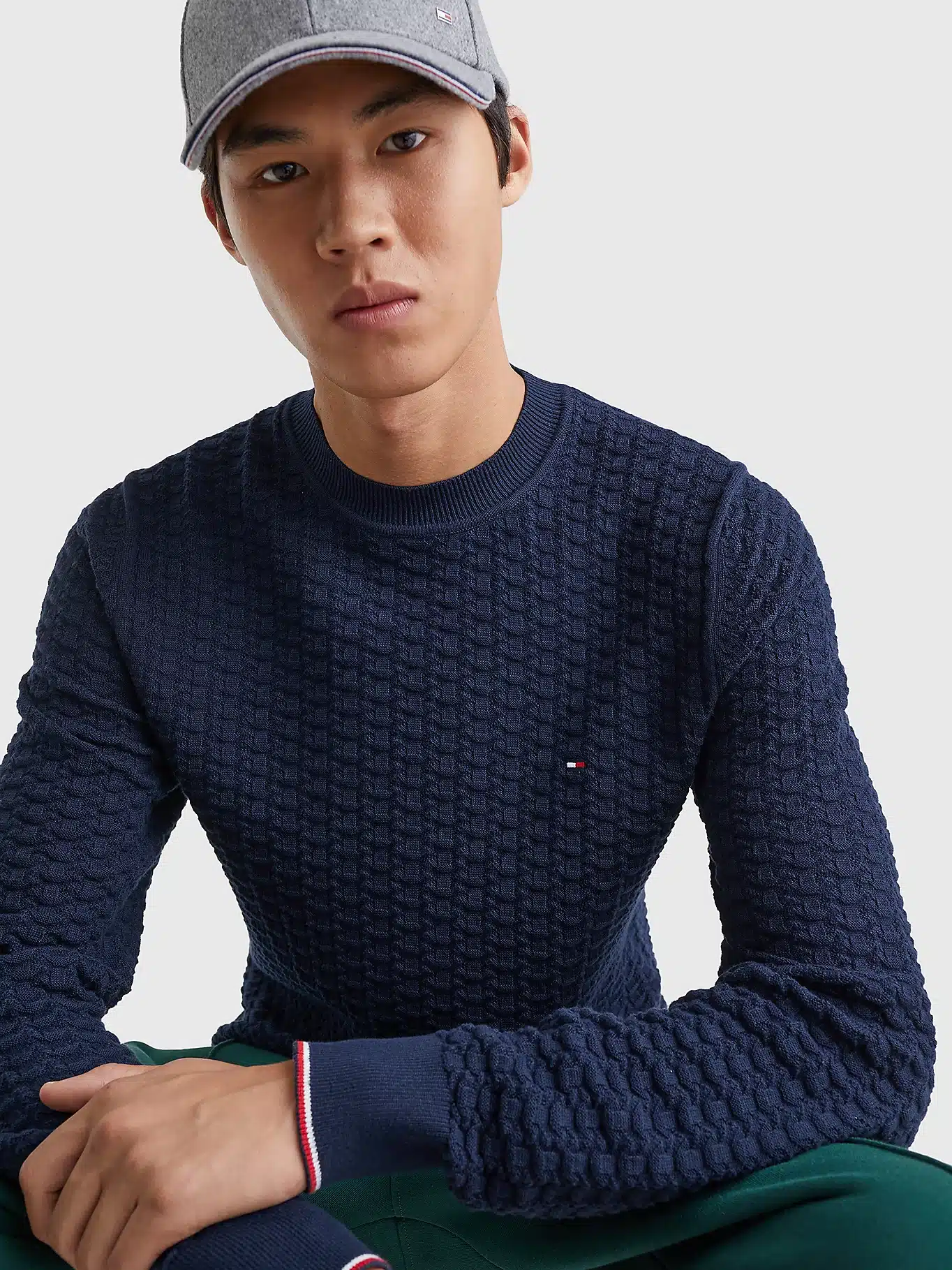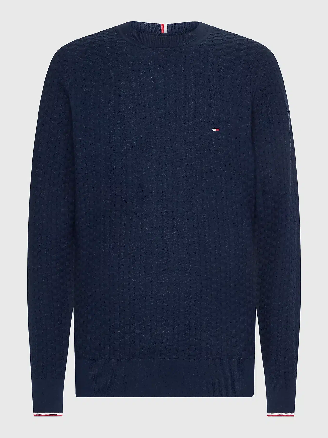 Miesten neule. Tyylikäs Tommy Hilfiger neule luomupuuvillaa. Neuleessa on struktuuripinta sekä Tommy Hilfiger lippulogo rinnassa.
