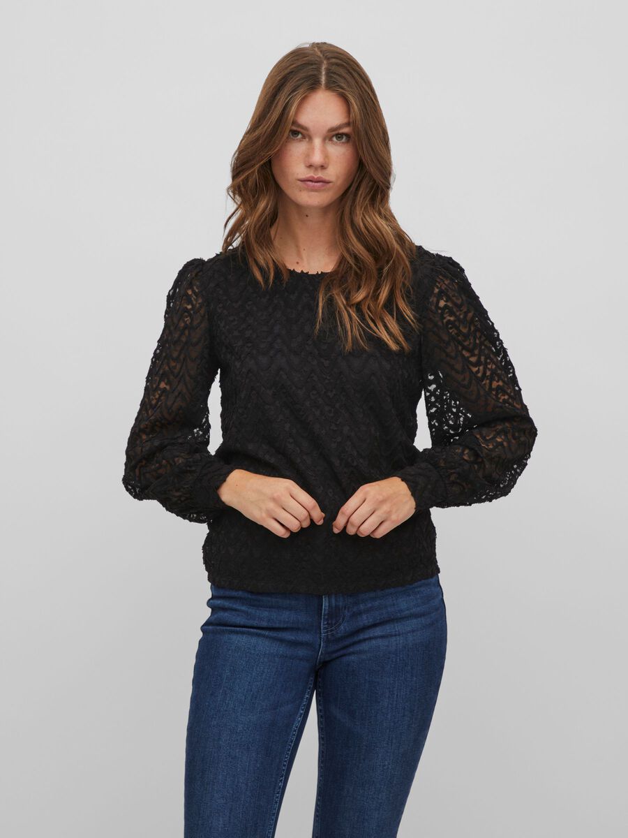 Naisten pusero. Tekstuuripintainen Vila pusero. Alustopin päällä läpikuultava tekstuuripintainen kevyt päälliosa.