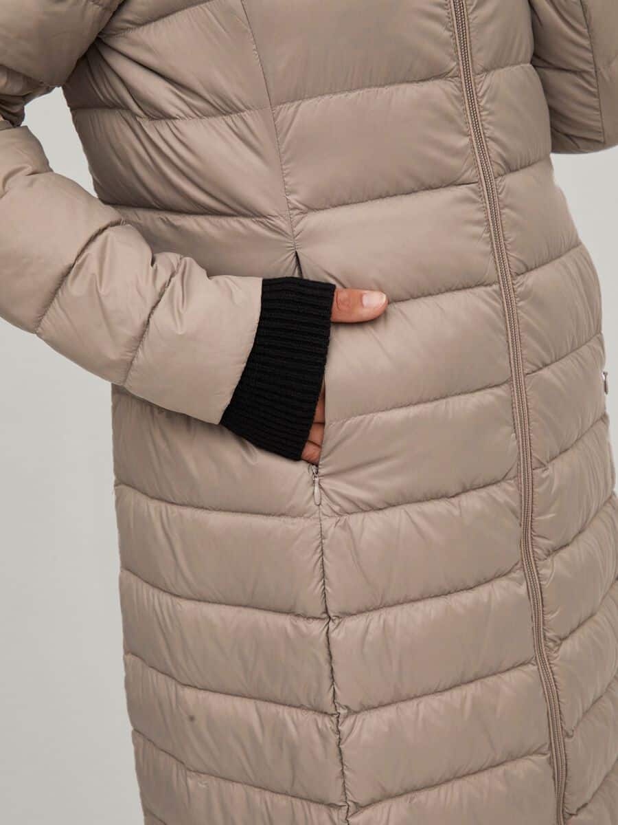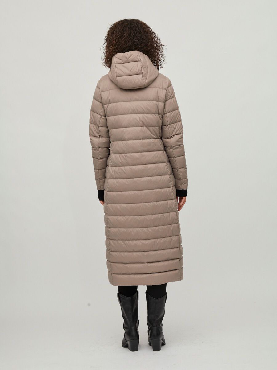 Naisten untuvatakki. Pitkä, hupullinen Vila untuvatakki.
