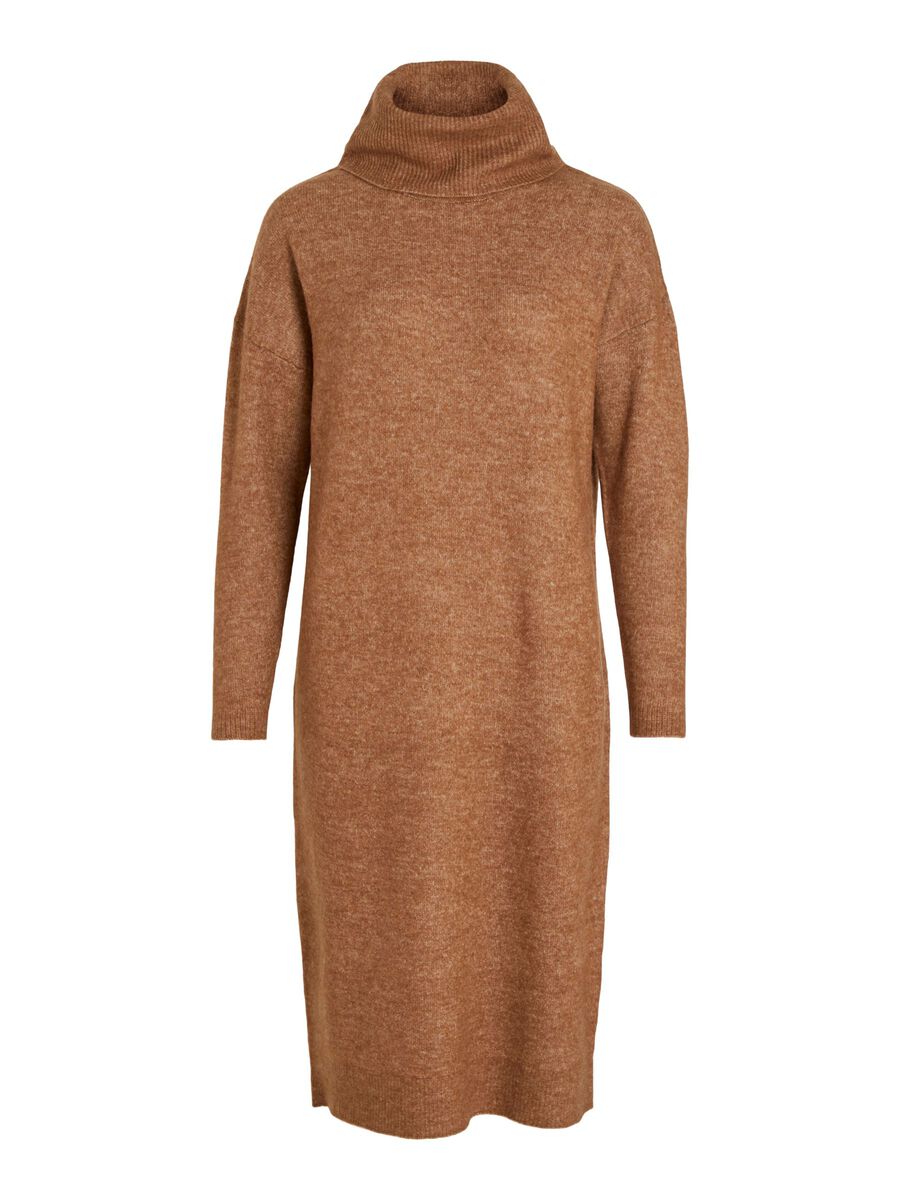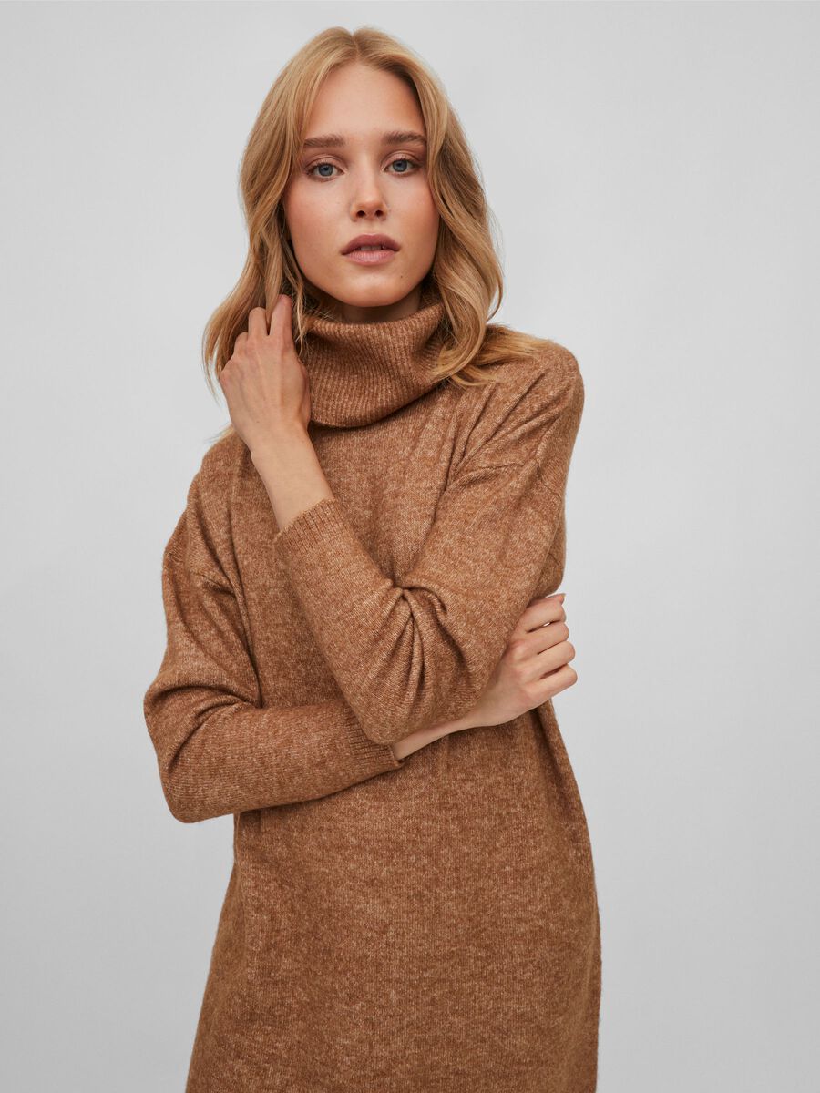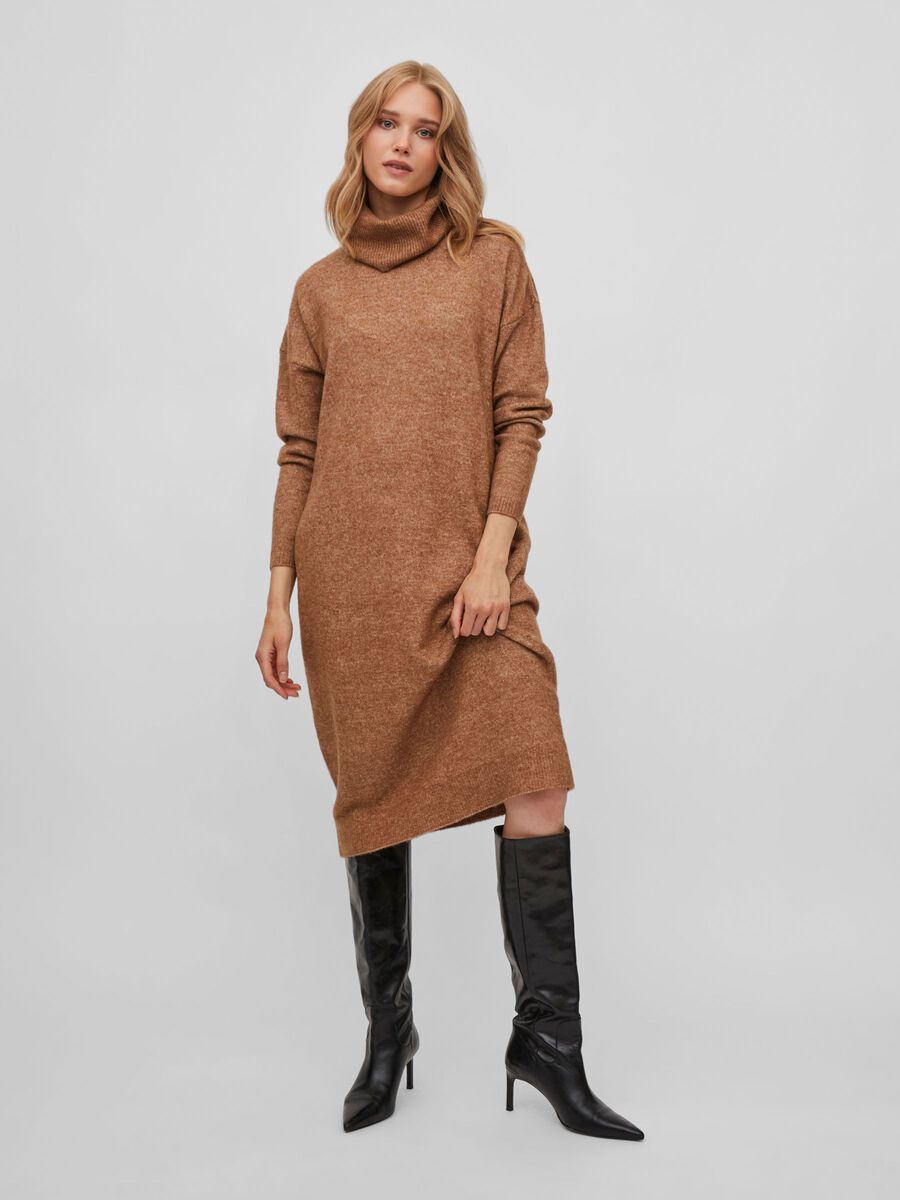 Pehmeä midi-pituinen neulemekko poolokauluksella.
