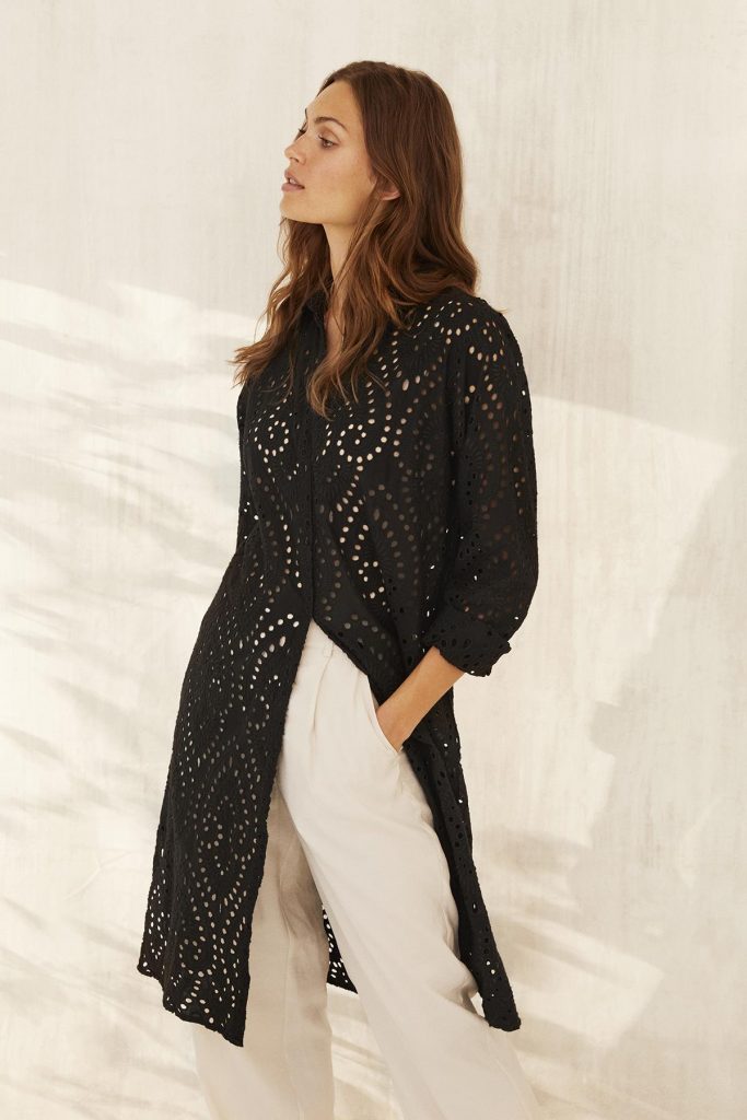 Paitamekkoa voit käyttää loppukesästä mekkona. Ilmojen viilennettyä avaa mekon napit ja pue jakuksi housujen parina.
